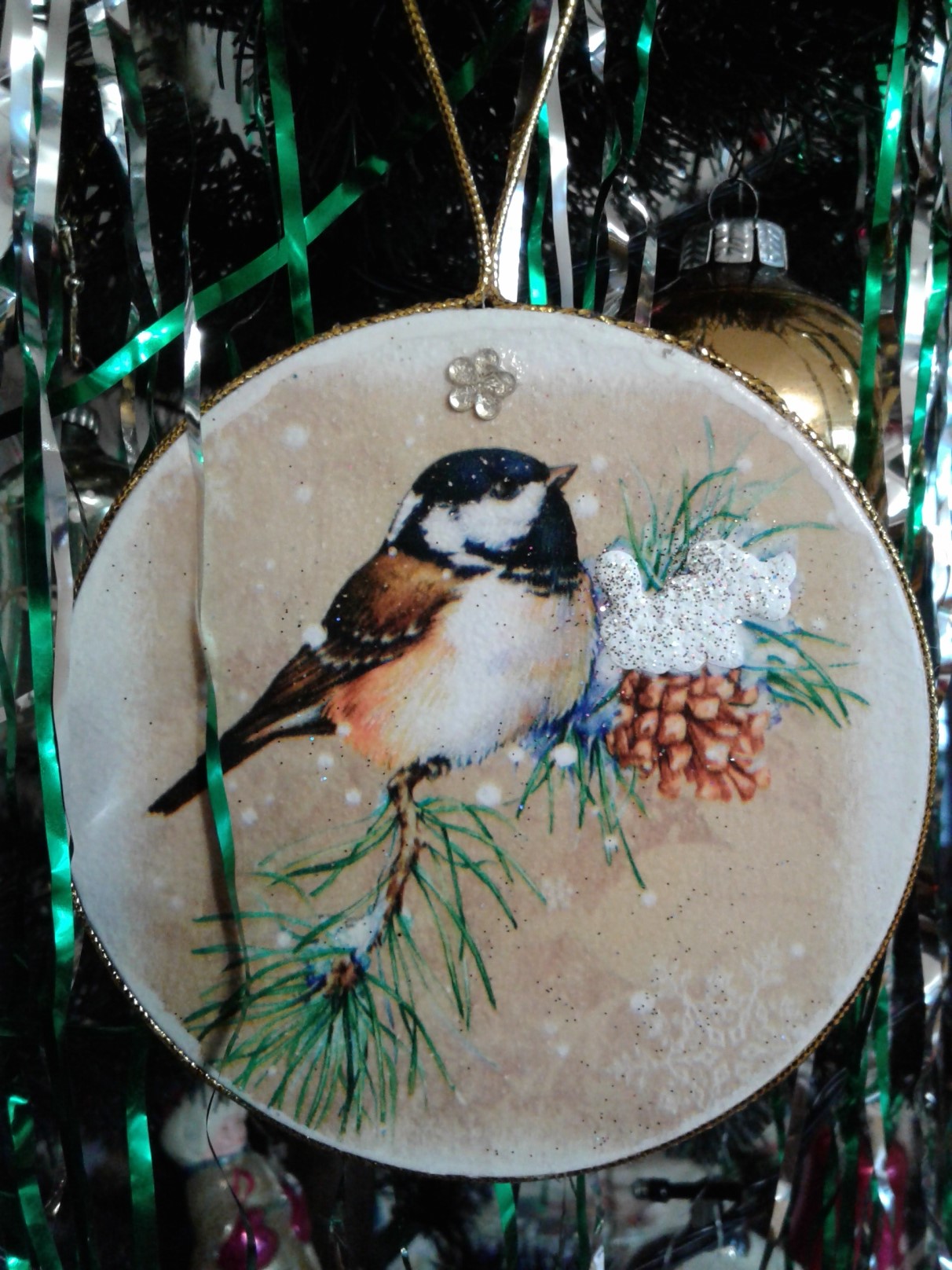 А теперь пошли подвесы на елку. Также на них использовала новогодние контуры с блестками, неоновые гели и все они переливаются.