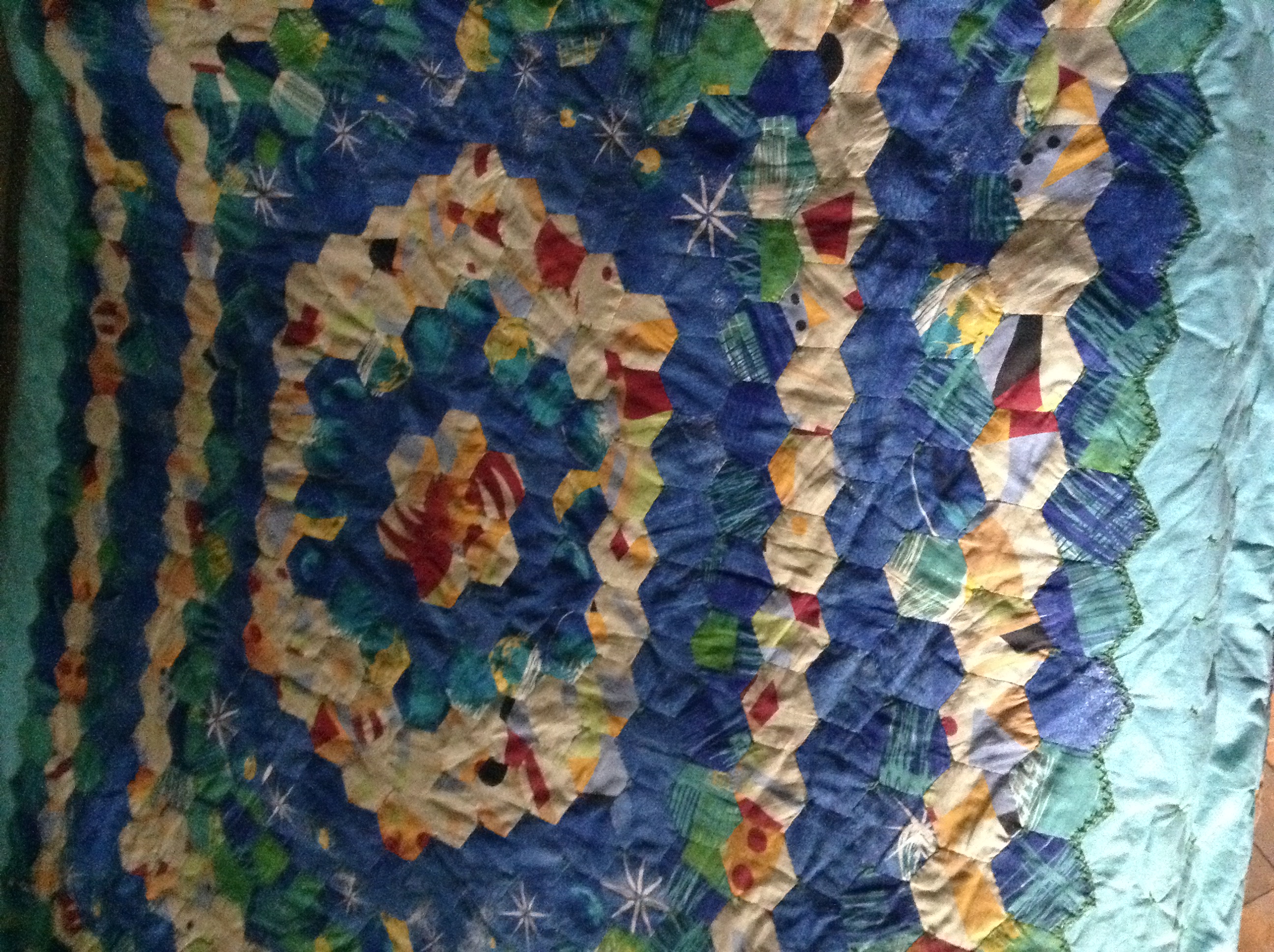 Какой труд, невероятно, такое большое одеяло сшить в ручную. Примите мой восторженный отзыв за вашу работу. С Новым годом и Рождеством вас!!! Здоровья, успехов, новых идей и их воплощения.