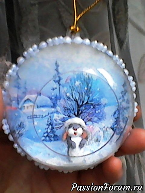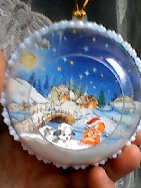 У меня возникла идея сделать объемную композицию из новогодних открыток внутри шара . Сейчас в продаже появились пластиковые шары , которые состоят из двух заготовок. Взяла в руки открытку, разрезала её, вырезала нужные элементы, сделала снег из акриловой замазки и маленьких кусочков бумажного полотенца. Поместила в некоторые шары сделанные из полимерной глины игрушки. Раскрасила, провела сборку , украсила снаружи и вот что у меня получилось в результате.