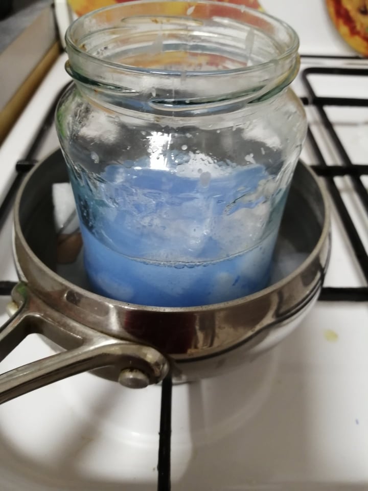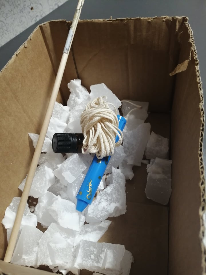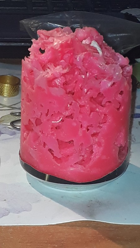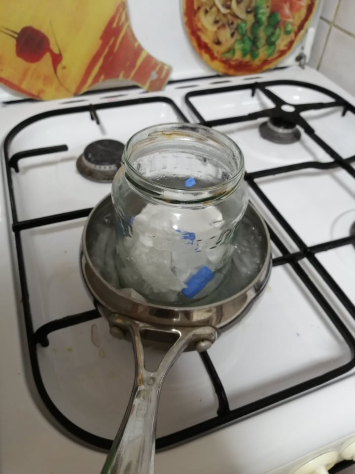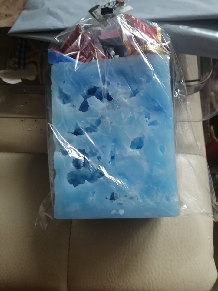 в пакет ставится фитиль , насыпается лёд и заливается горячим парафином или остатками свечей