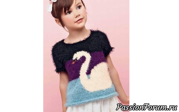 Вязаный спицами пуловер "Лебедь" для девочки. Описание и схемы