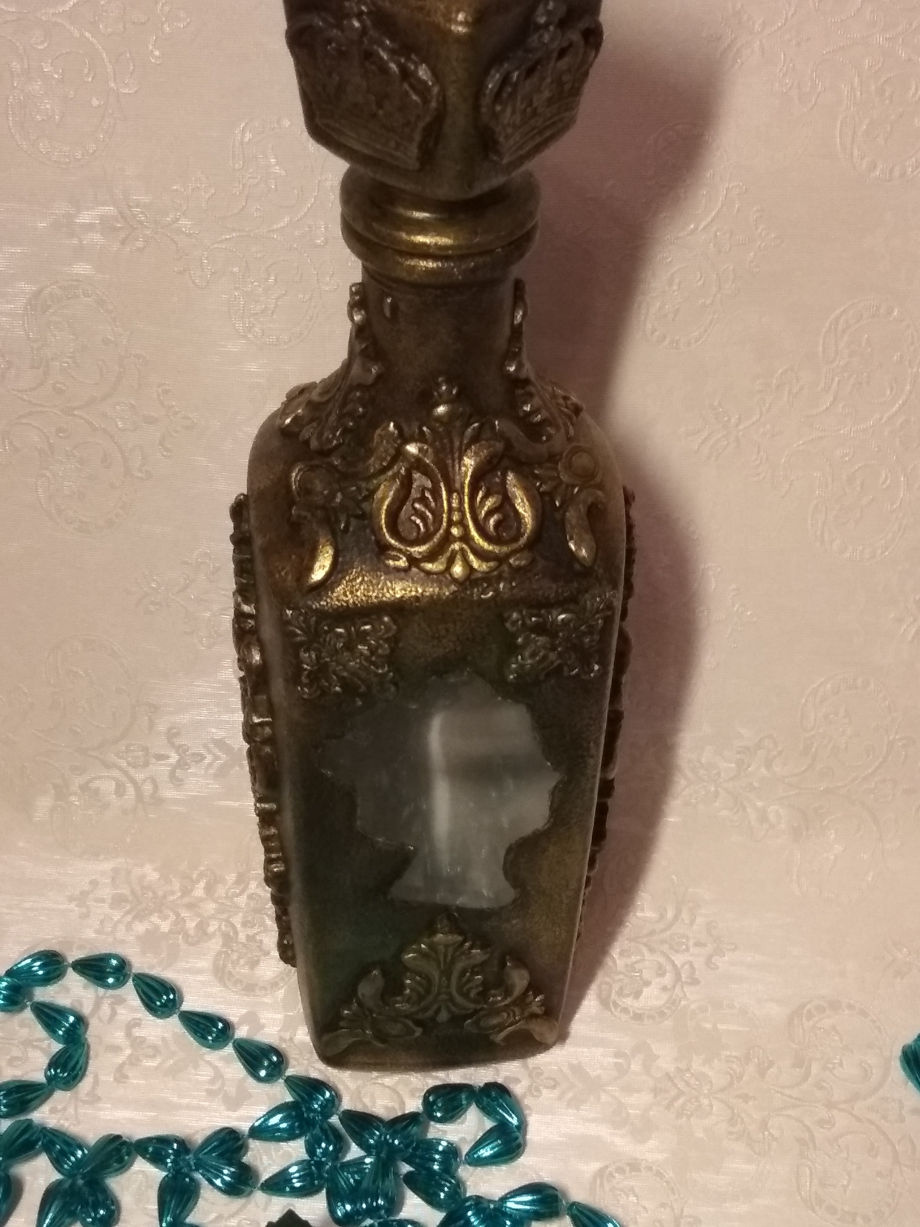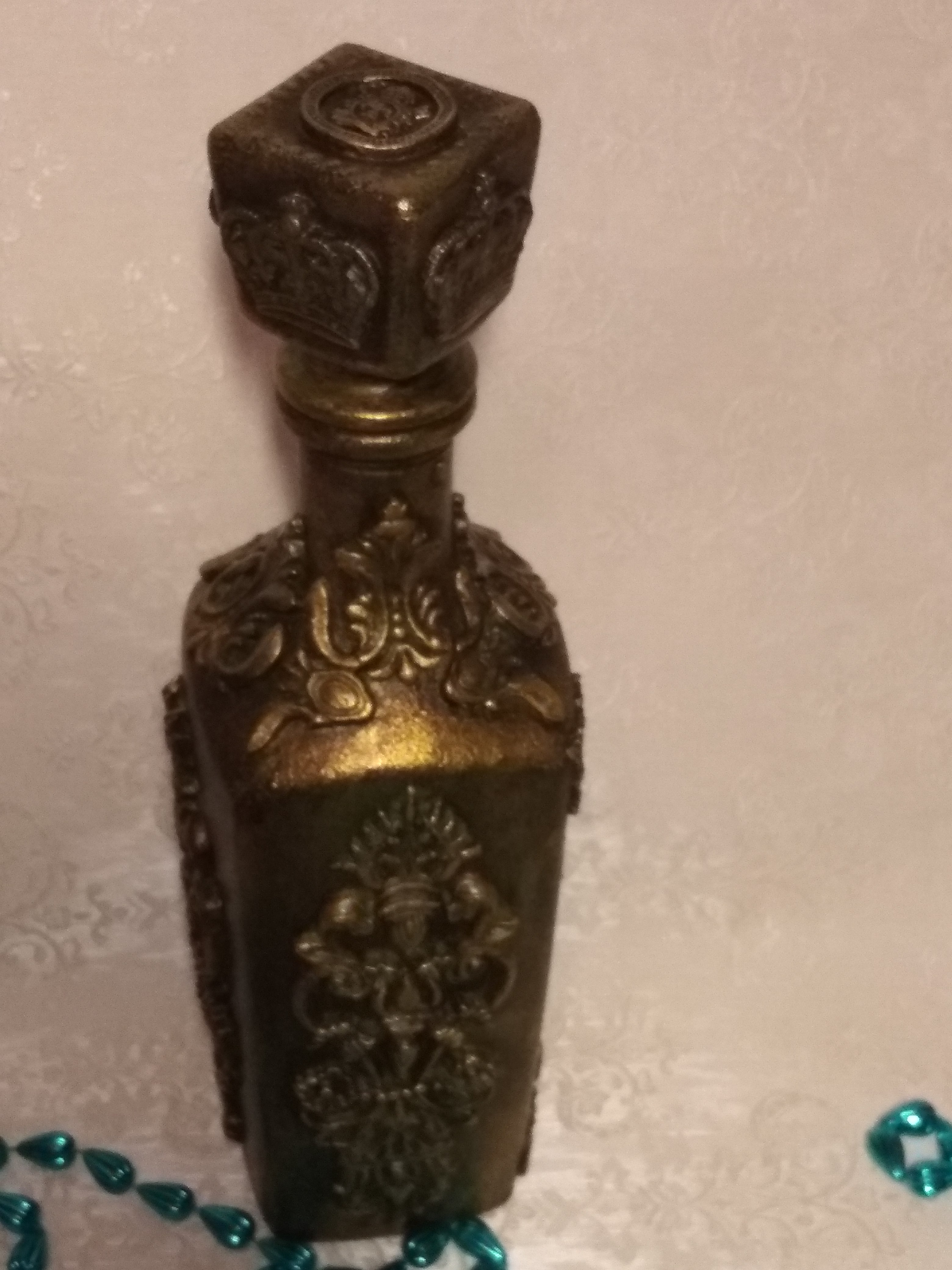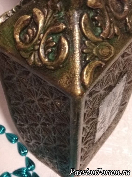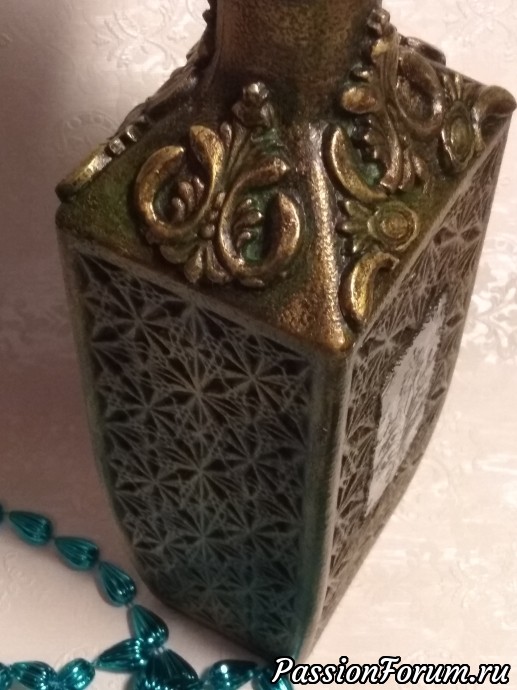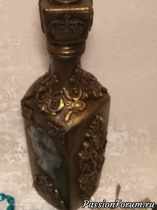 Один из штофов уже имел заводскую фактуру и места для творчества было не очень много,а другой был чистым и творческой мысли было где развернуться,что получилось теперь хочу представить вам. Штоф для женщины с фактурой Елизавета, мужской Екатерина. В работе использовались акриловый грунт,акриловые краски металлик Античное золото и оксид хрома для патины, битумный и золотой воски,прозрачная гель паста,молды,глина Дас. Фотографий много,хотела показать работы со всех сторон.