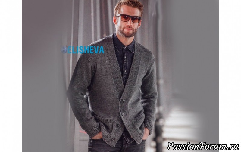 Хотите сделать подарок и связать своему мужчине, что нибудь модное и несложное. Можем предложить Вам утонченный с четкими линиями, вязаный спицами мужской кардиган с прорезными карманами.