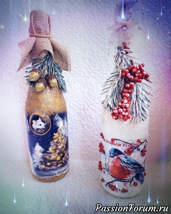 Очень мне нравится на Новый год декорировать шампанское. А а этом году и заказов было много. Вот что у меня получилось