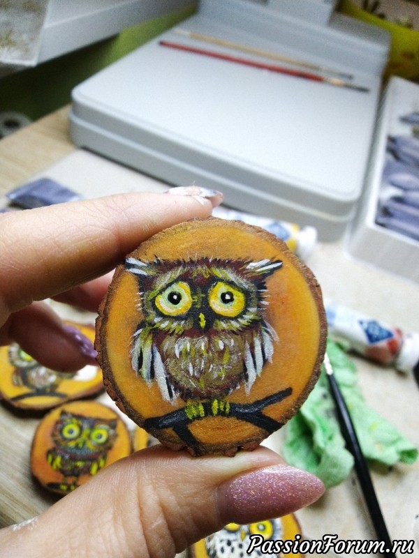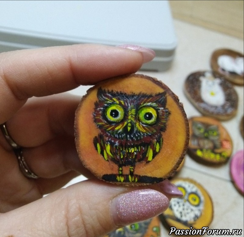 покажу магнитики на основе древесных спилов. Спилы прошла морилкой акриловой , цветные - алкогольними чернилами, расписывала акриловыми красками и темперой.