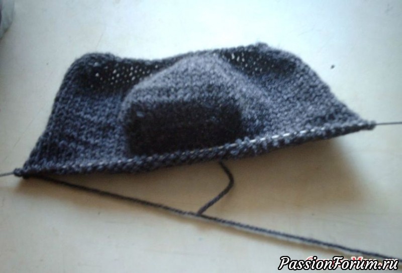 Теперь вернемся к 18 ряду -это там где мы меняли цвет и вязали за заднюю полупетлю... поверните ногу вверх подошвой