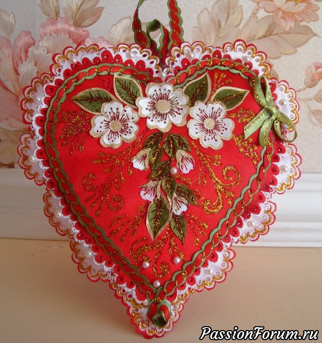 Сердечки, как символ любви и сердечной привязанности к чудесному празднику — Дню Влюбленных или дню Святого Валентина. Сердечки выполнены в различных видах рукоделия, в том числе и в технике объемного гильоширования, Сердечки изготовлены из атласа, лент, шифона, гипюра.Их можно украсить цветами, жемчугом, кружевами, бисером, вышивкой, лентами, выжиганием по ткани др.украшениями. Чудесный подарок в любое время года и к любому празднику!