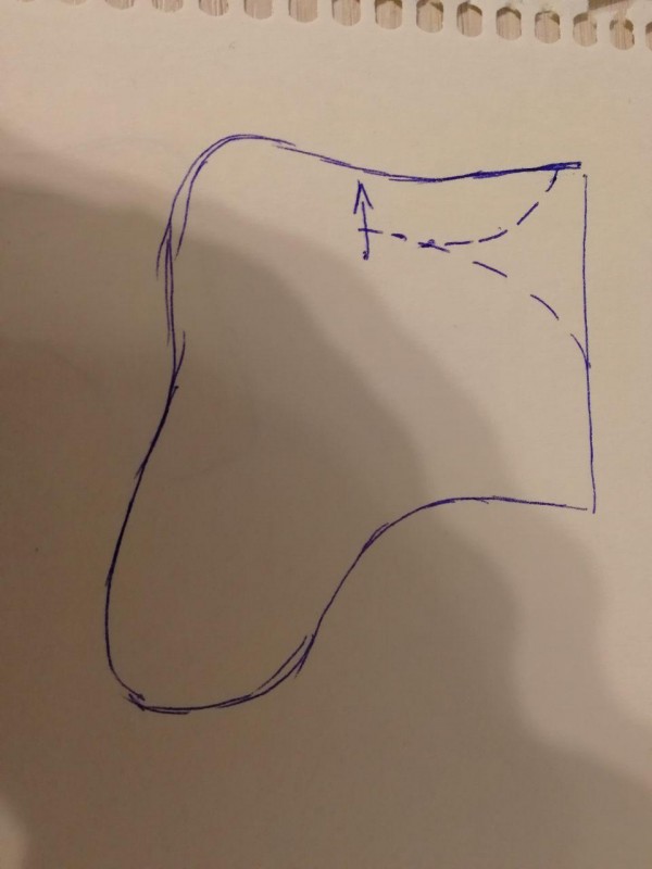 Вот такой шаблон. Немного уваливала и резала по пунктирам. Немного потянула по стрелочке, чтобы голенище зашло на язычек. Заход примерно 1,5 см получился у основания. Блокираторы не использовала.