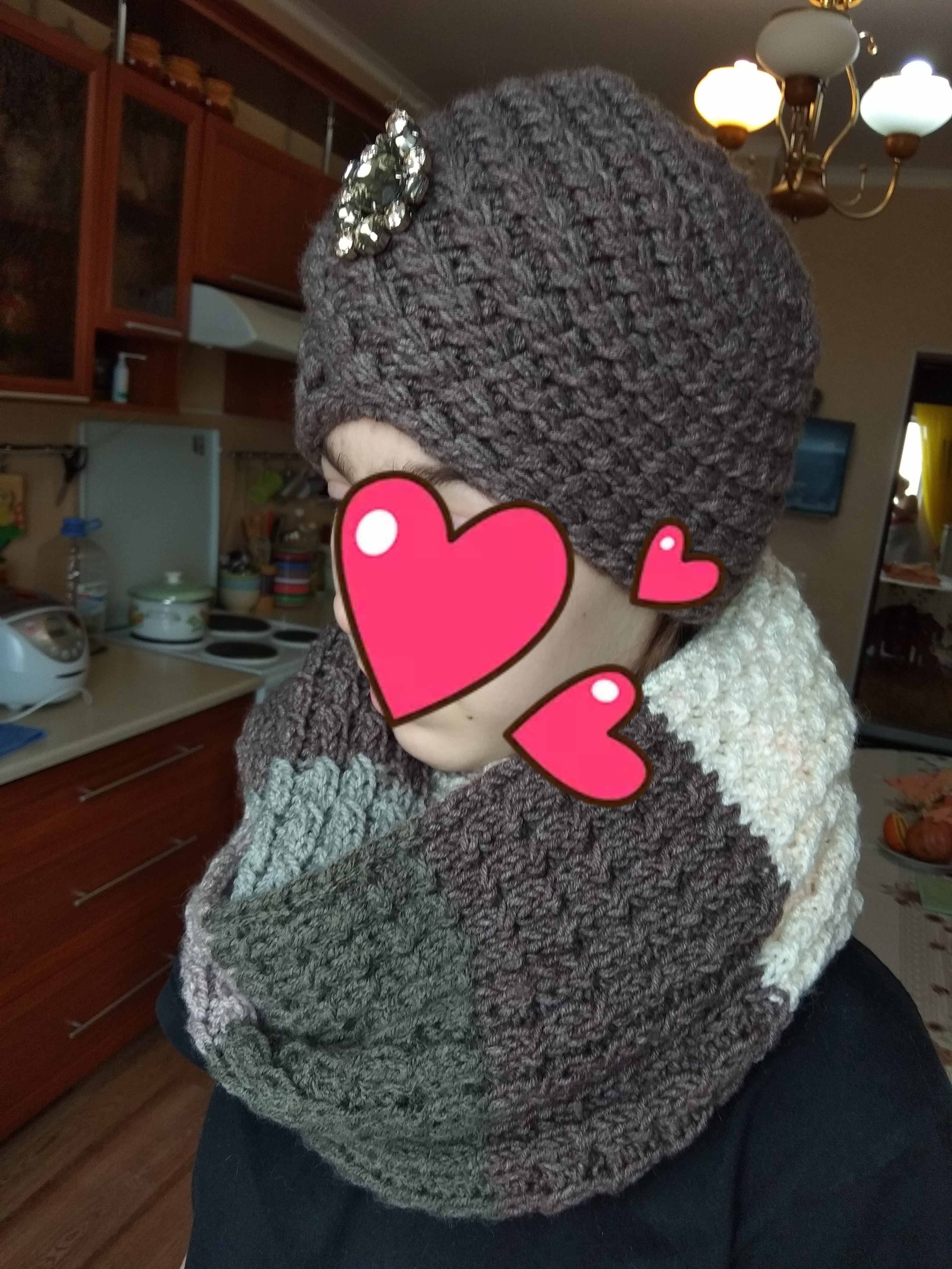 Замечательный комплект! Вязка объёмная классно смотрится!