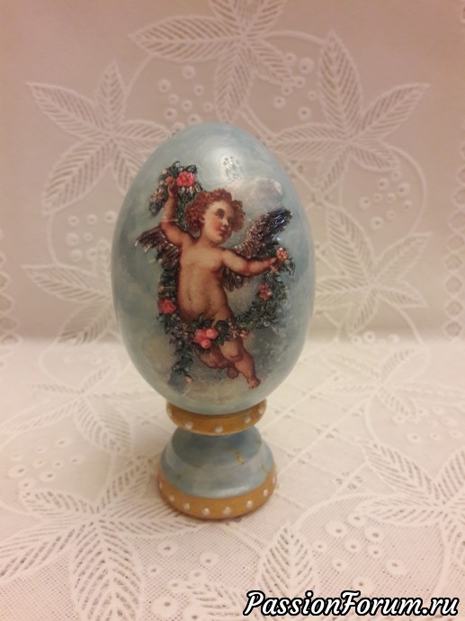 Время проносится со скоростью света, не заметишь как подойдет один из главных у нас праздников Пасха. И так как со временем капитальные проблемы, нужно сделать больше, чем я успеваю, к Пасхе начала готовиться уже сейчас и делать потихоньку подарки. Первое яйцо которое сделала назвала "Ангелы в небе", а второе "Мое пасхальное настроение".