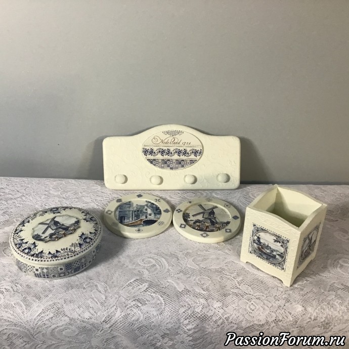 Декупаж. Набор для кухни в бело-голубой гамме.