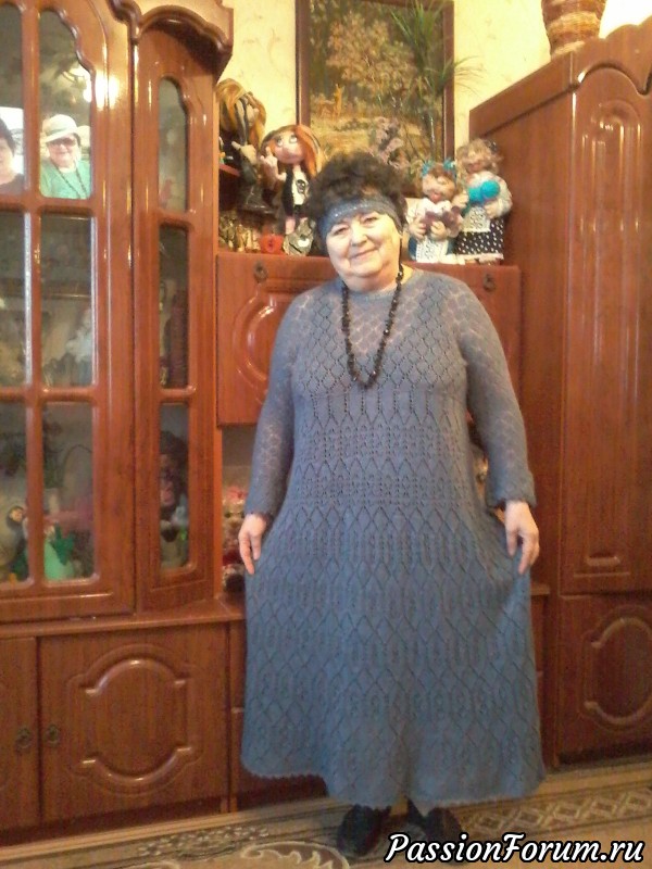 Вот это работа! Людмила, Вам очень идет это платье! Затейливый рисунок, красивый цвет, и сидит хорошо! Долго вязали?