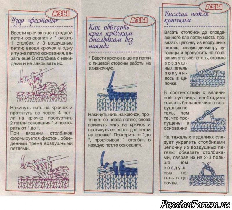 СБОРКА Детали немного увлажнить, дать им высохнуть. Выполнить швы рукавов и юбки. По 3 см на рукавах и юбке загнуть по ажурному ряду внутрь и пришить. Отверстие на задней детали обвязать крючком столбиками без накида. У выреза горловины выполнить крючком висячую петлю для пуговицы из 10 возд. п. и обвязать ее 8 столбиками без накида. По границе выреза горловины и кокетки и между юбочкой и кокеткой крючком белой пряжей выполнить фестоны.