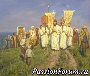 Мне моя бабушка рассказывала, что раньше ходили пешком на всенощную с села Павловск в Барнаул — это 60 км (тогда по простой дороге). Вставали еще до светла, шли семьями, несли «пантелимоны» — иконы, так их называла бабушка. Потом всю ночь стояли в церкви и… снова пешком домой. Богатыри были прадеды! Примерно, как на картине внизу.
