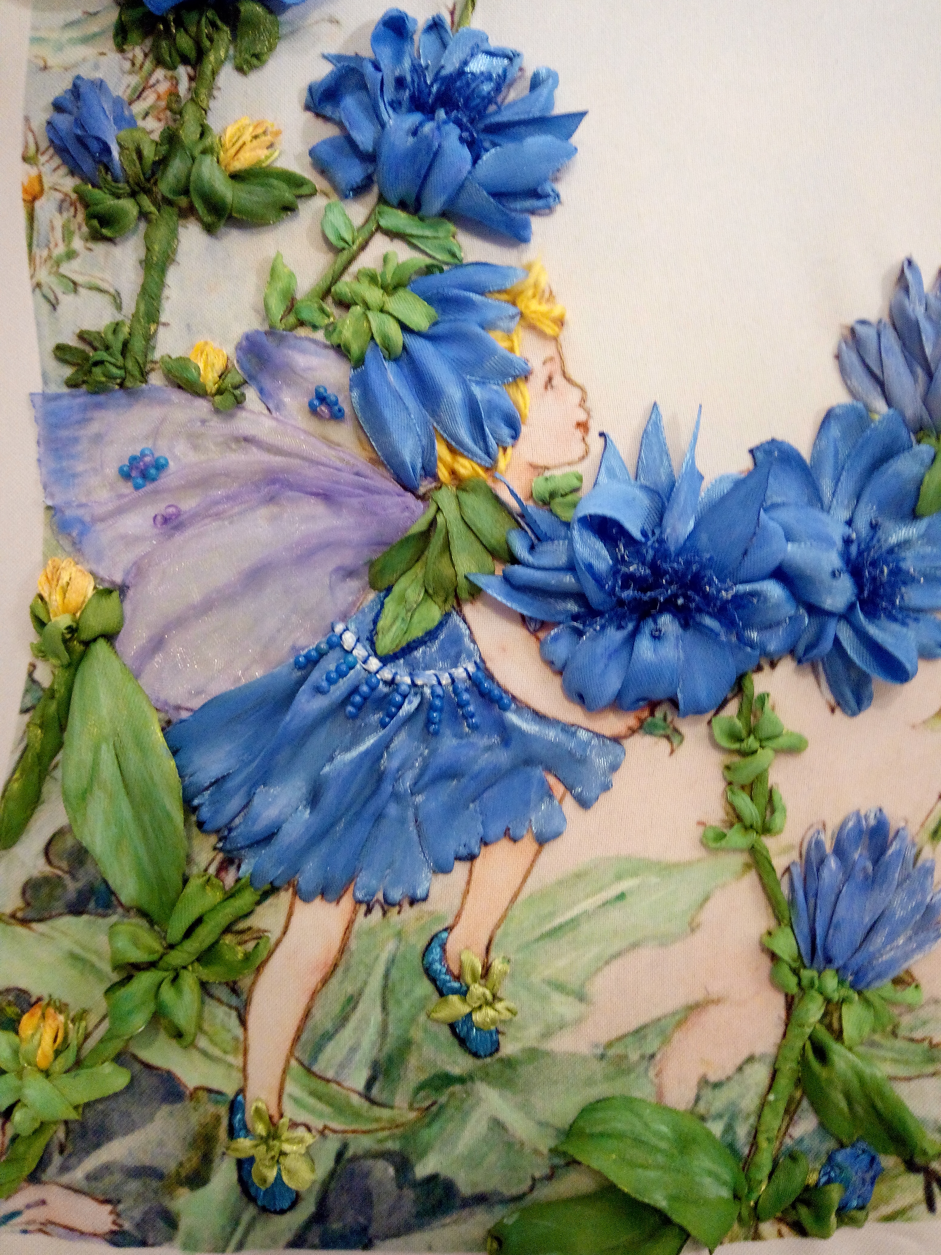 Безумно красиво! Безупречно вышиты все цветочки, очень миленькие девочки-эльфы! Сказачно! Вы молодец, Ирина! Использовали принты или это авторская работа с чистого листа?