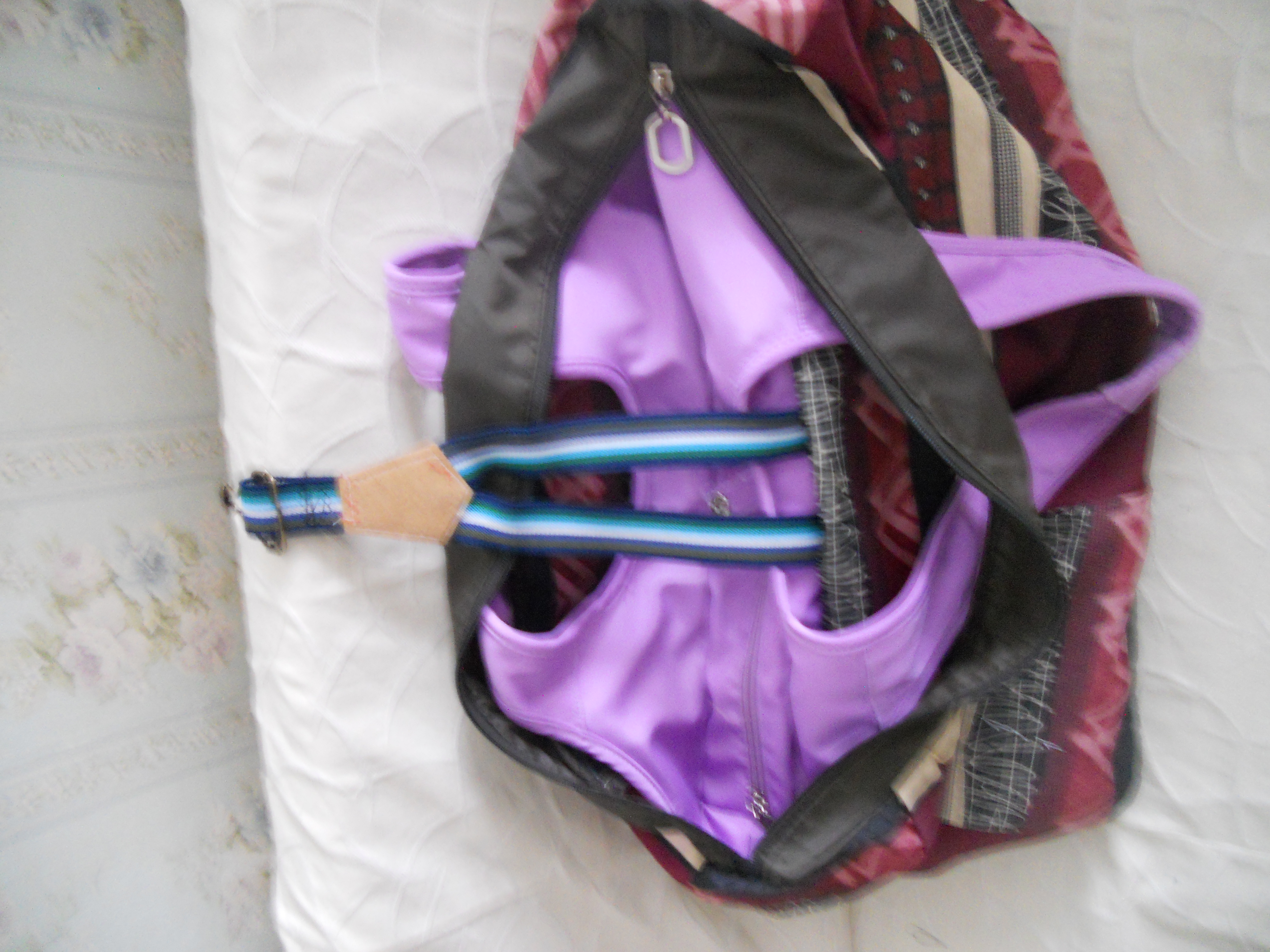 Часто путешествую. И давно уже отказалась от багажа; только ручная кладь. В прошлом году подарила мне дочь новую дорожную сумку: легкую, удобную ( со множеством карманов ) и яркую. Вот только в ненастье не очень удобно: маркая. Потому и задумала я сшить на нее чехол. Честно говоря, долго перебирала всевозможные варианты; хотелось чтобы и чехол был не темный и как -то ремни вшить. А тут приятельница отдала сломанный зонт ( нее машина почему-то эту ткань не шьет ), и все сложилось. И чехол, и ремни из старых детских подтяжек. Эх, сколько раз убеждаюсь: выбросишь что-либо, а тут и идея как можно было бы использовать появится. Кучу подтяжек выбросила! А я в воскресение отправляюсь в новый тур и теперь не боюсь, что сумку замараю.