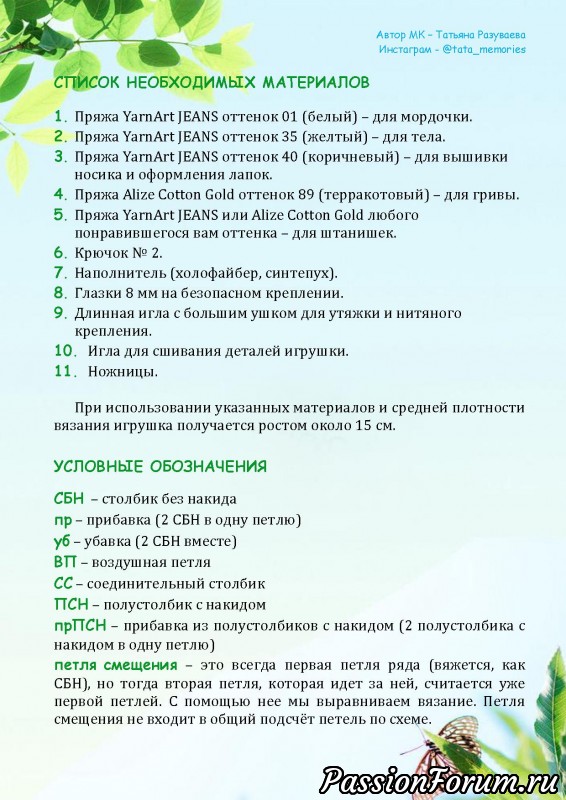 Бесплатный мастер-класс по вязанию львенка амигуруми от Татьяны Разуваевой.