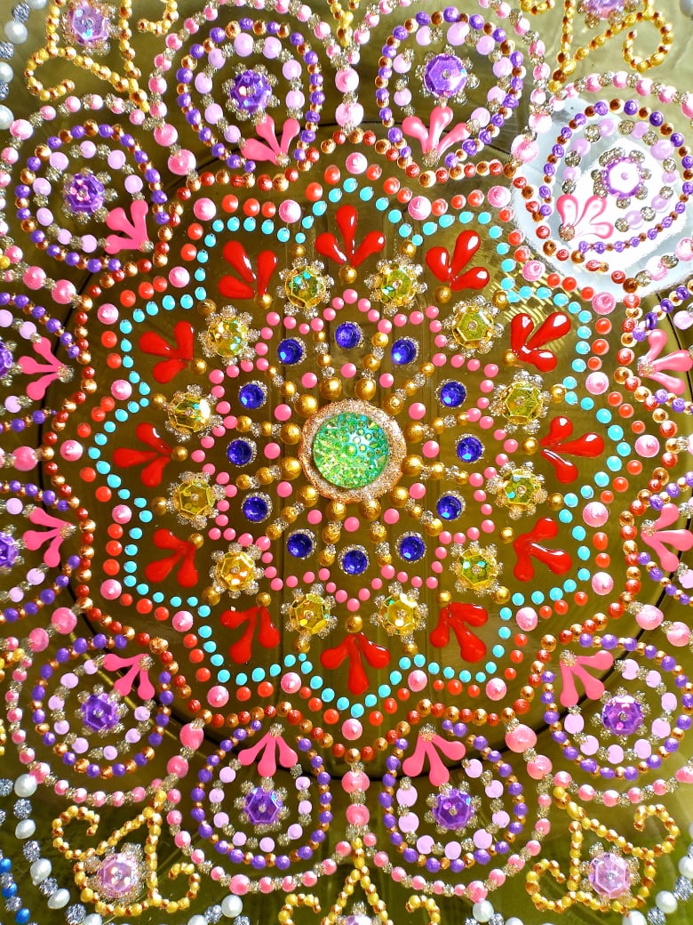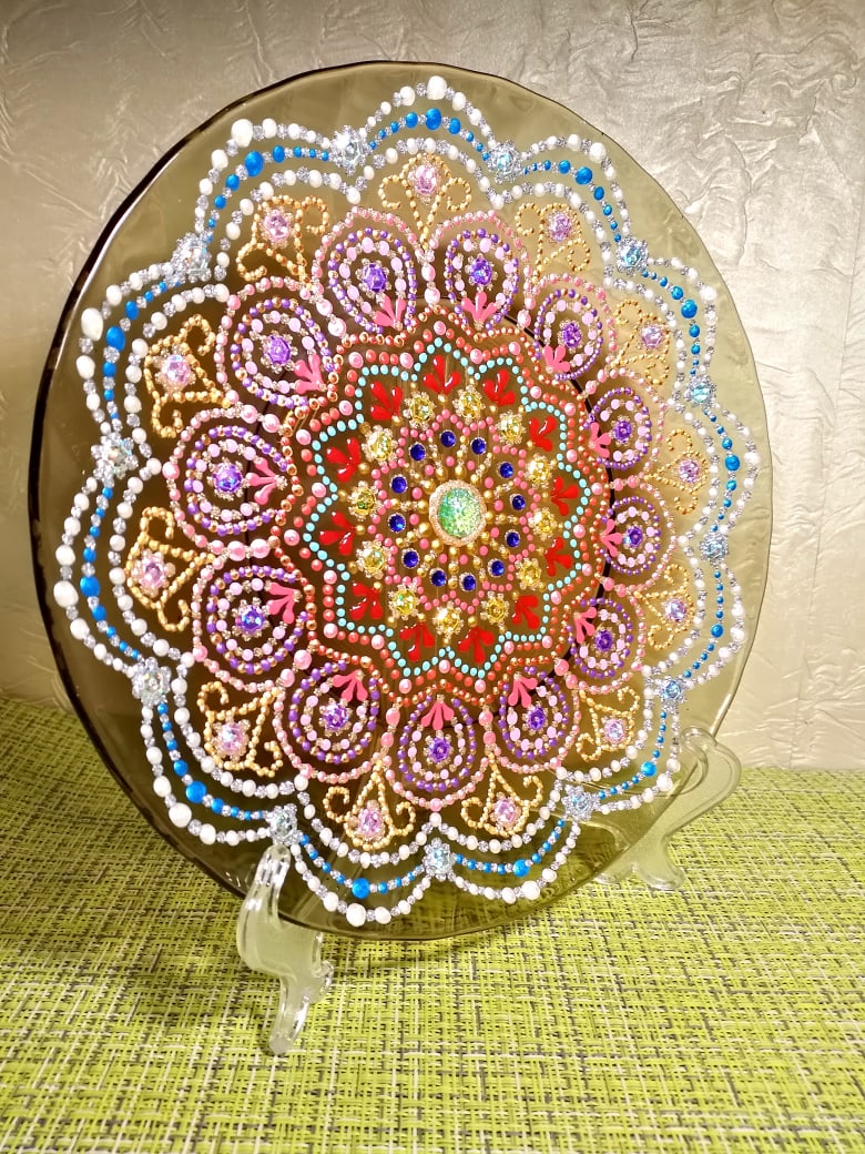 Здравствуйте! Готовлюсь к Ярмарке. Выполнила несколько работ. Сегодня показываю мандалу "Благополучие". Она очень позитивная по энергетике. Приносит в дом гармонию и радость, улучшает материальное благосостояние. ))