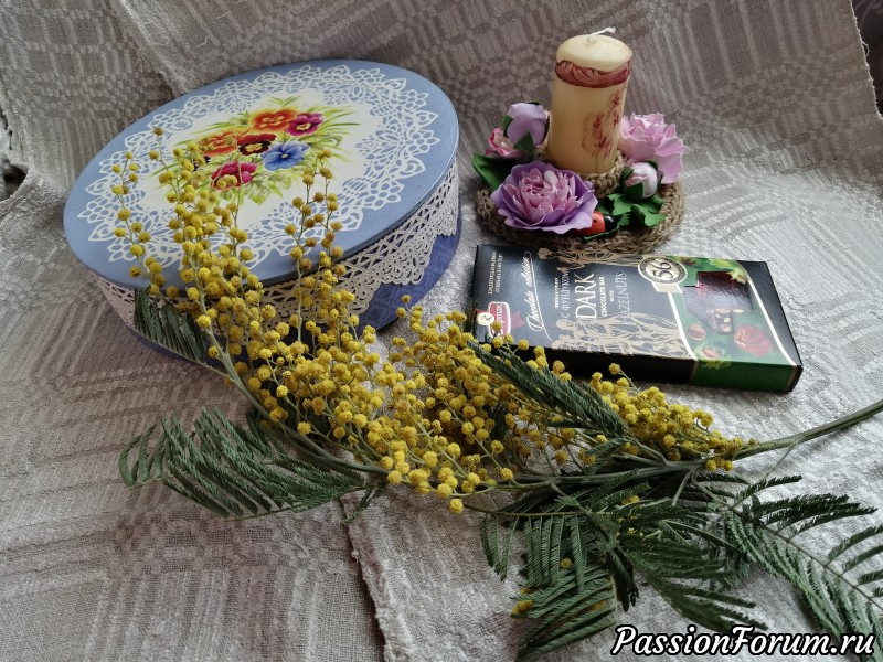 К нашему женскому празднику попросила мужа ничего не покупать мне и не дарить. Мне очень хотелось попасть в лес, и я знала что другой возможности у нас на ближайшее время не будет. И он пошел мне навстречу. Конечно символически он поздравил меня веточкой мимозы и шоколадкой и мы собрались на природу.