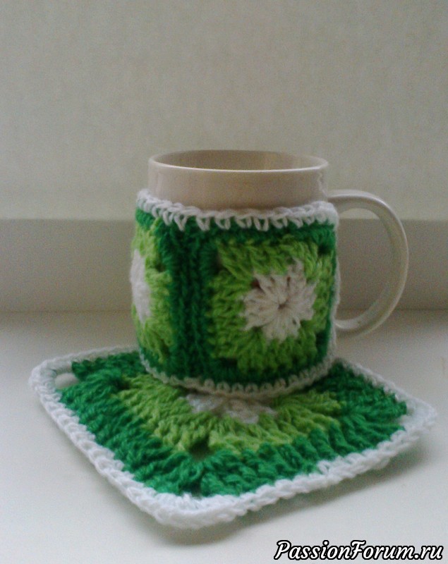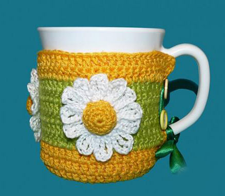 Чехол для кружки крючком сохранит тепло вашего напитка и не позволит вам обжечь руки.
