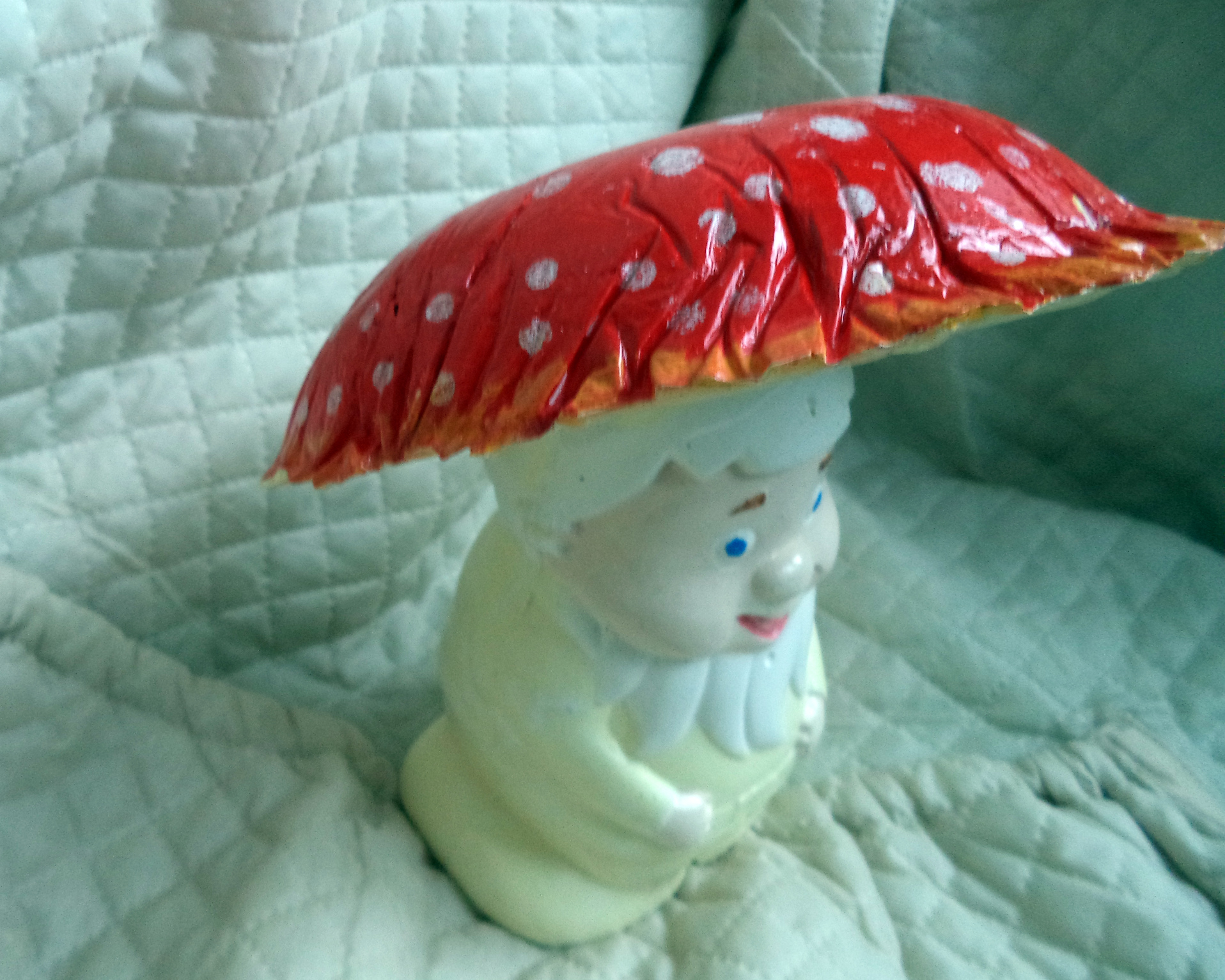 Ирина, спасибо. Поделки сделаны из гипса. Получились тяжелые, но это даже и хорошо. Будут крепко стоять. Размер 20 см. Формы продают у нас в магазине Фикс Прайс для детей. Делать фигурки из снега. Залил, вытащил и крась. Грибок из двух частей: гномик и обычная тарелка.