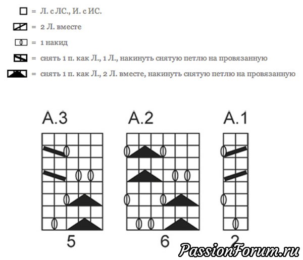 Узор вяжем по диаграммам А.1, А.2, А.3, где отражены все ряды.