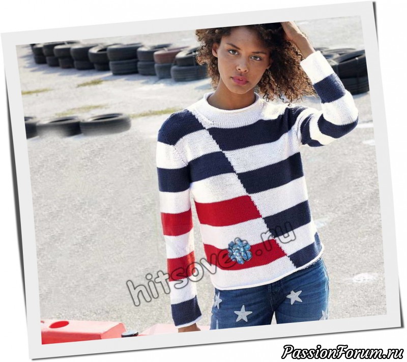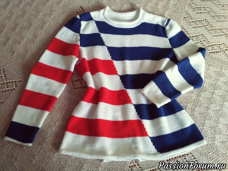 Ну спасибо, вразумила. Теперь я точно знаю, что в душе мАряк. Обожаю сочетание белого, синего и красного. У меня платье такое было. А теперь даже и не знаю. У нас все больше жовто- блакытне… Шучу. А какую оду закатала ниткам, читала и плакала. Я тоже люблю эти нитки.Один недостаток- ограничение цветовое. Я хотела синий или голубой цвет купить и нет. Сейчас как раз вяжу вторую кофту из этих ниток. А первую кофту уже лет 5 ношу. Заболталась, а теперь о главном. Джемпер замечательный, яркий и в тоже время строгий. Отлично связан и внука не забыла, нитками поделилась. Молодец, МаБА.