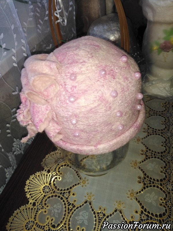 Здравствуйте дорогие друзья! Наконец то сваляла шапку по размеру головы ,а у меня 55-56 размер.На шапку пошло 70 гр. шерсти и 22 гр вискозы,раскладка диагональная.