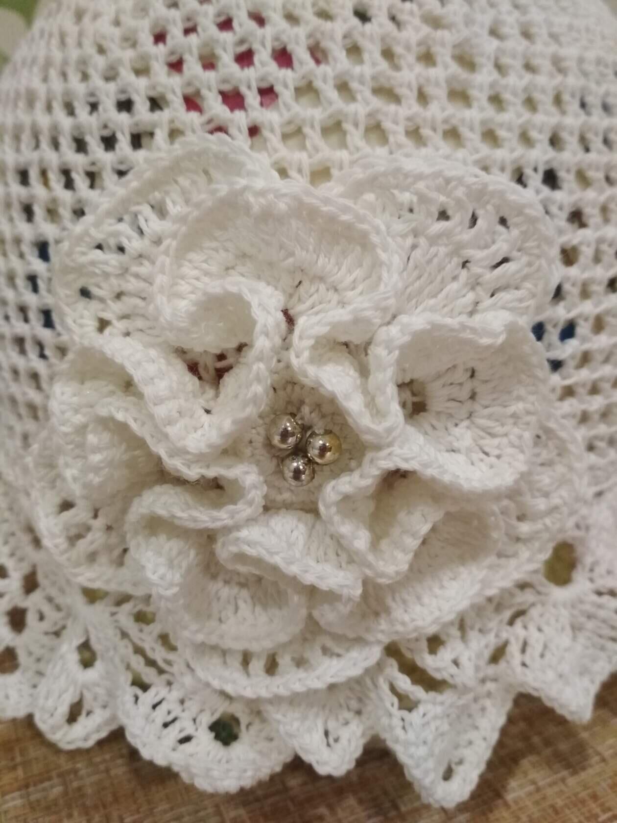 Я не ношу головные уборы, но люблю вязать. Поделитесь, пожалуйста, схемкой каймы и цветка.