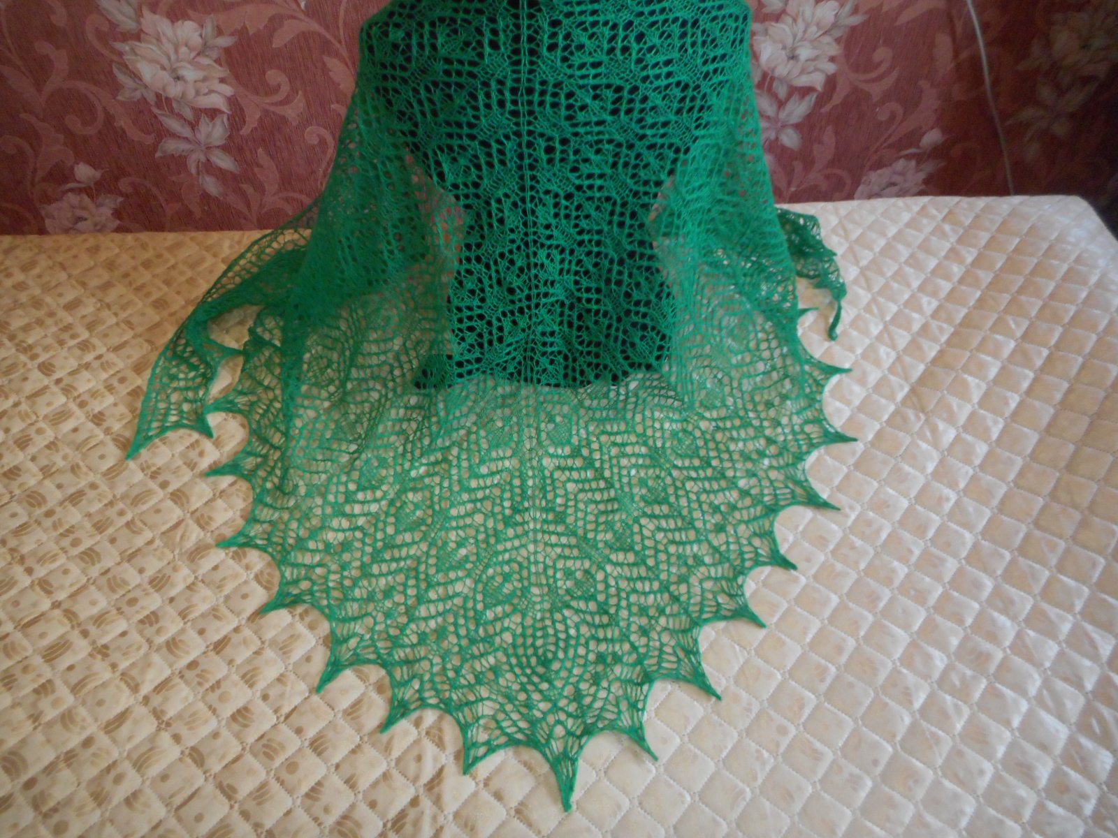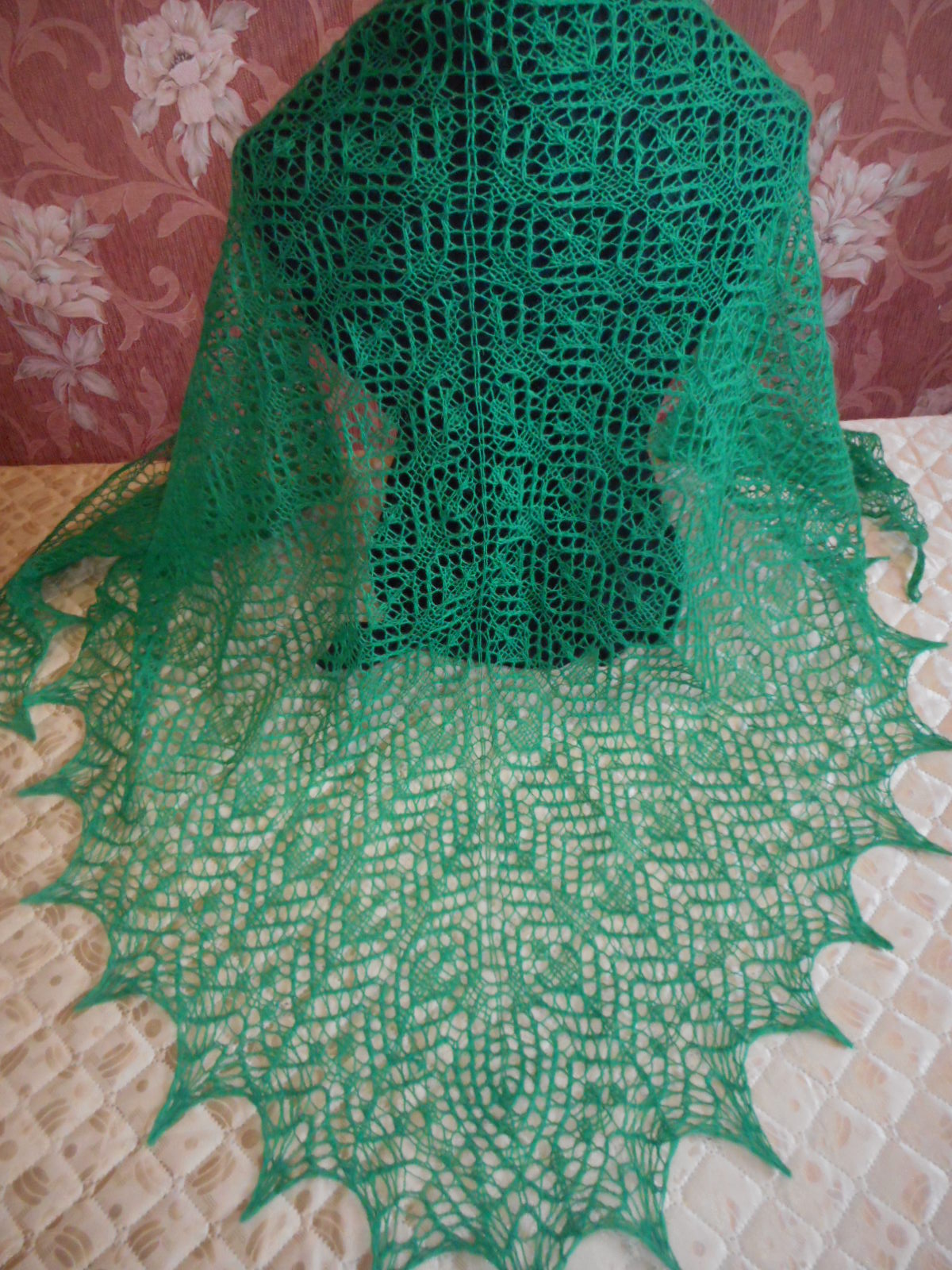 Интересная шаль, обычно у Вас с большими мотивами, а тут меленький рисунок.