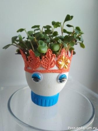 В надежде, что к Светлому празднику закончится эпопея с самоизоляцией надумала коллегам подарить по живому сувенирчику. Для эксперимента второго апреля посеяла в скорлупке дайкон и редис.