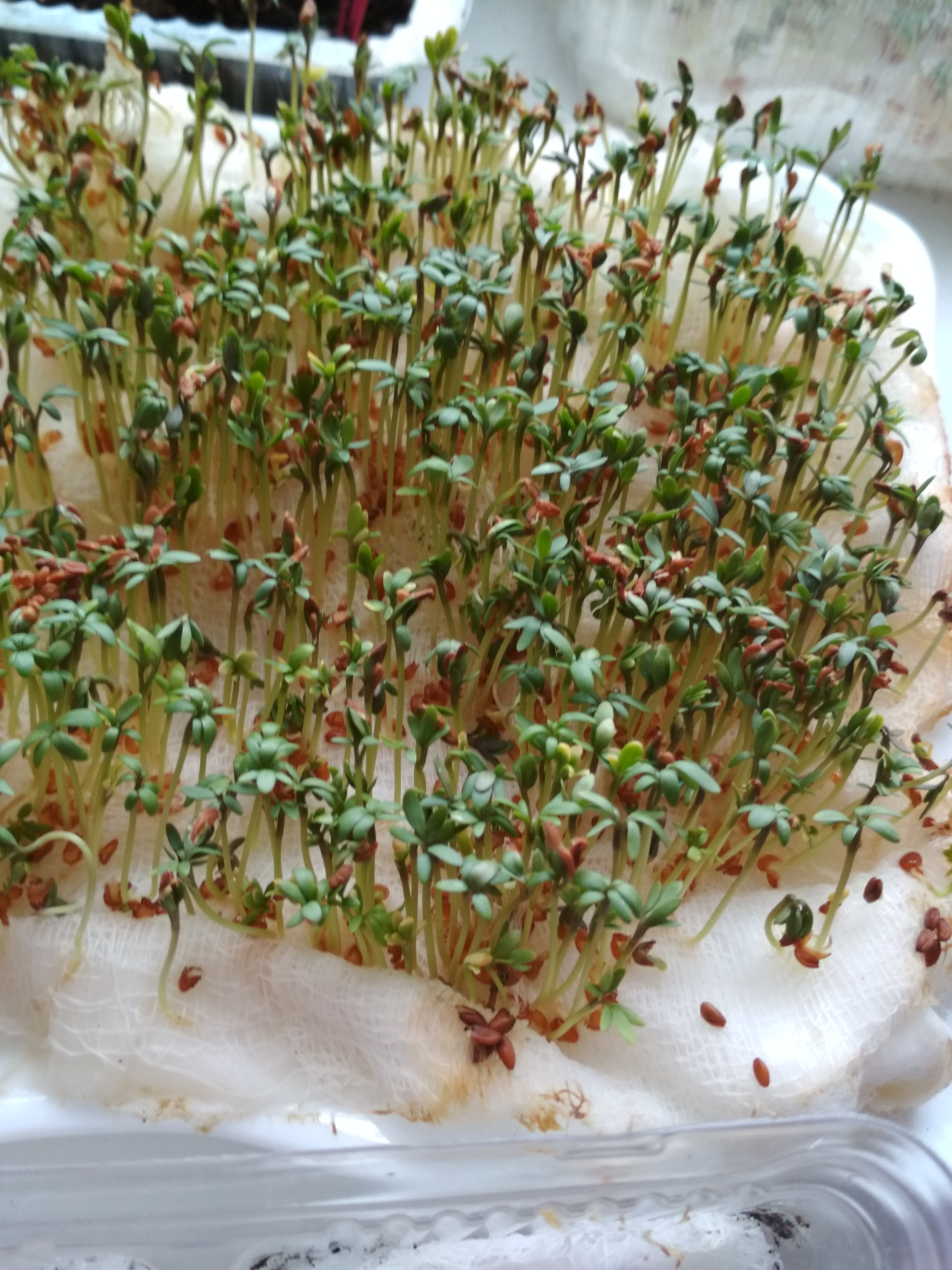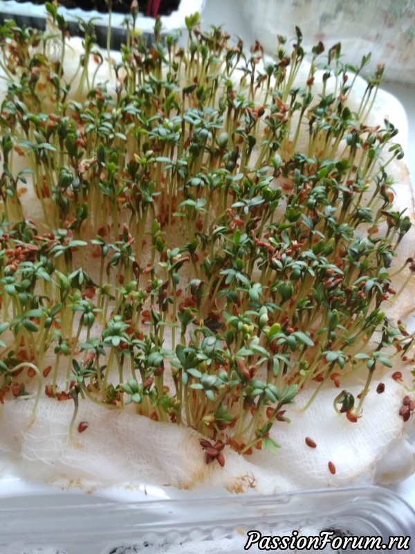 В предыдущем посте https://www.passionforum.ru/posts/120052-ogorod-na... Valjusha (Валентина) в комментарии написала: "Кресс -салат сажаю, его можно взращивать даже на мокрой вате, без земли." Решила и я воспользоваться этим методом, тем более, что закончился грунт, а семян предостаточно))) Конечно, никакая это не гидропоника, но результат порадовал.