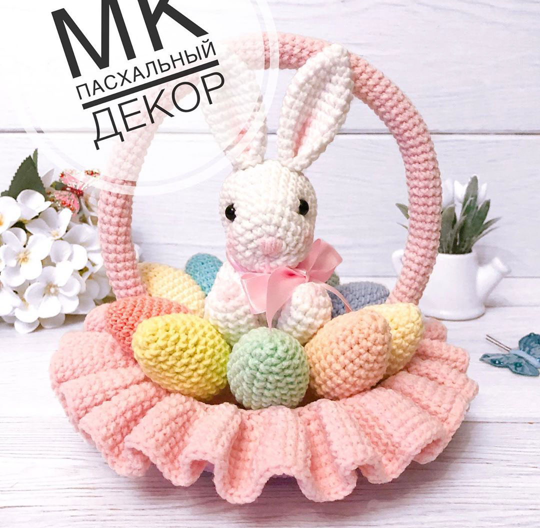 Для вязания праздничного декора автор использовала крючок 2,0 мм и пряжу YarnArt Jeans. Вязаная корзинка станет восхитительным украшением к Пасхе.