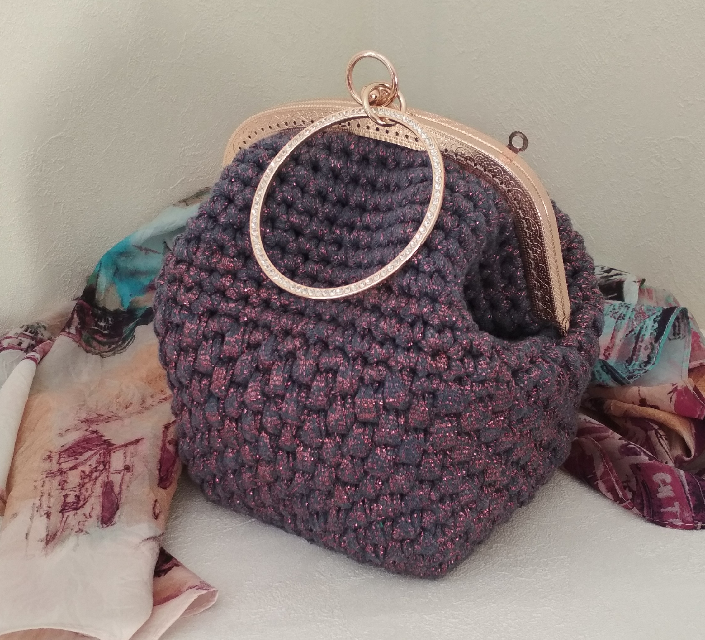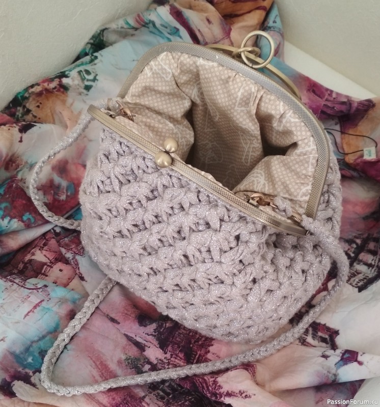 Сумочки связаны крючком из ленточной пряжи с приятным блеском. Внутри есть подклад с карманом.Хорошо держат форму,очень вместительные.