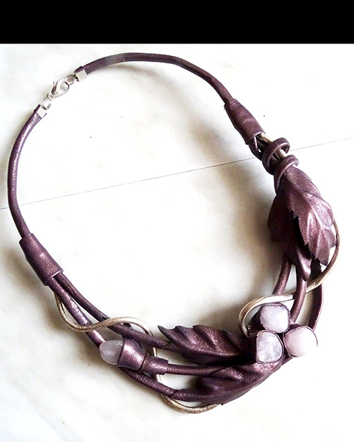 Дополнением является шнур из нежного белого золота. Цвет не яркий , поэтому светло-розовые камни очень гармонично вписались в этот дизайн колье.