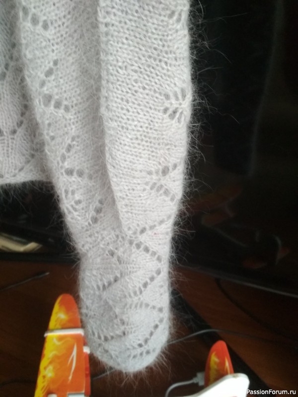 Высох, стал пушистым. Очень теплый. Пряжи ушло 100 г - 800м.