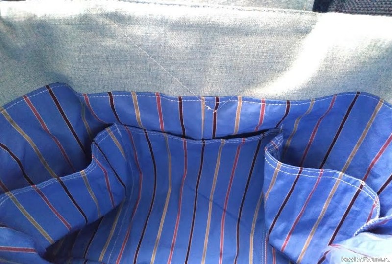 Работа кипит,надо много сделать из списка "Хочу". Давно заприметила в инете сумочку ,которая попала в мой список ...хочу попробовать сделать.Понравилась тем ,что это переделка (не надо мат. вложений) и нет в ней явных признаков джинсов (карманы,молнии,боковые швы). Попробовала - получилось - понравилось.