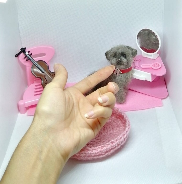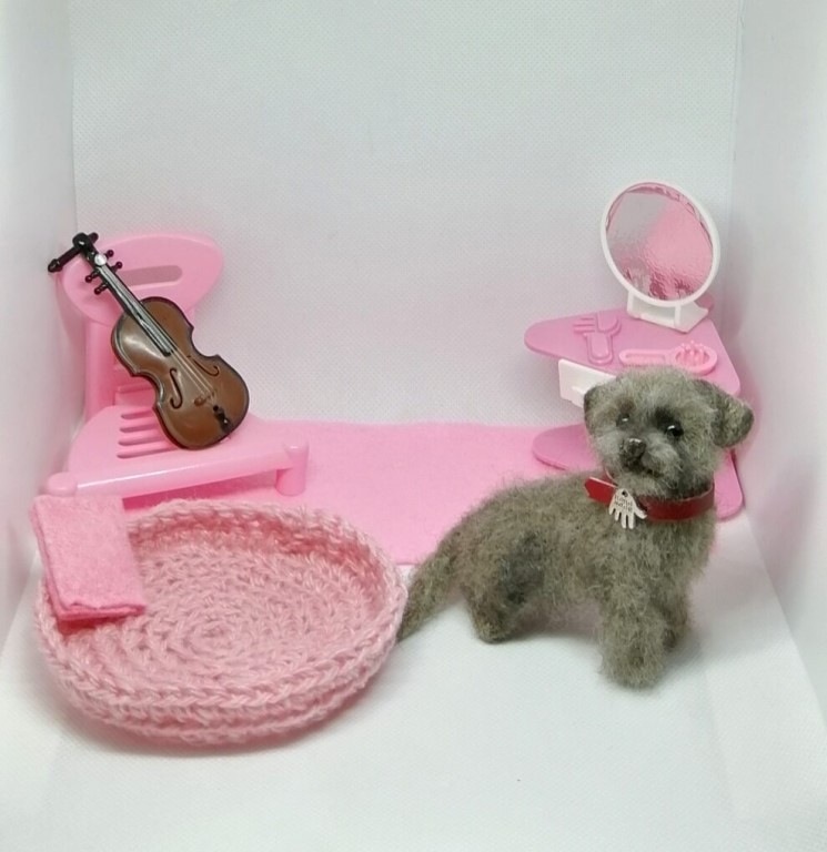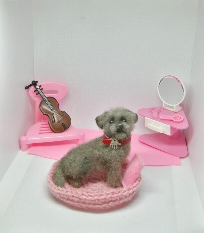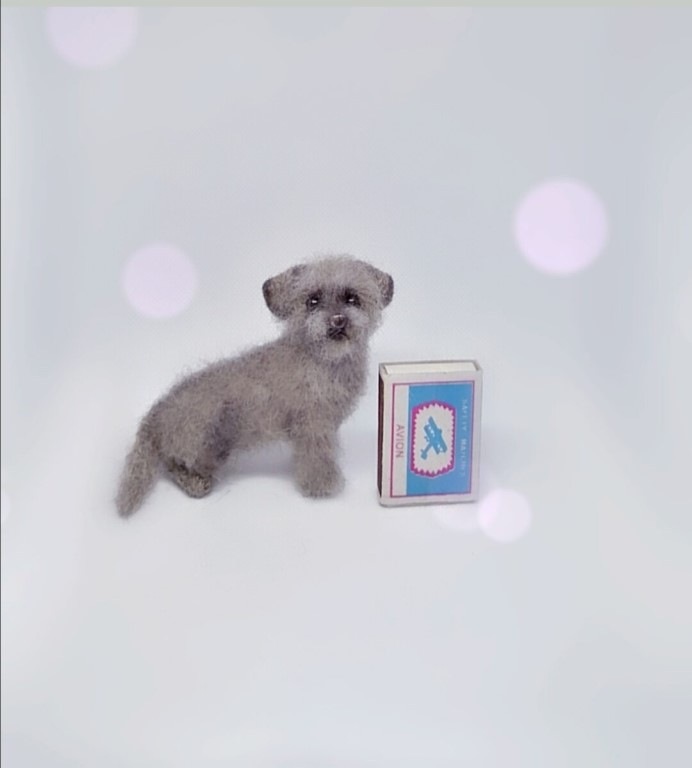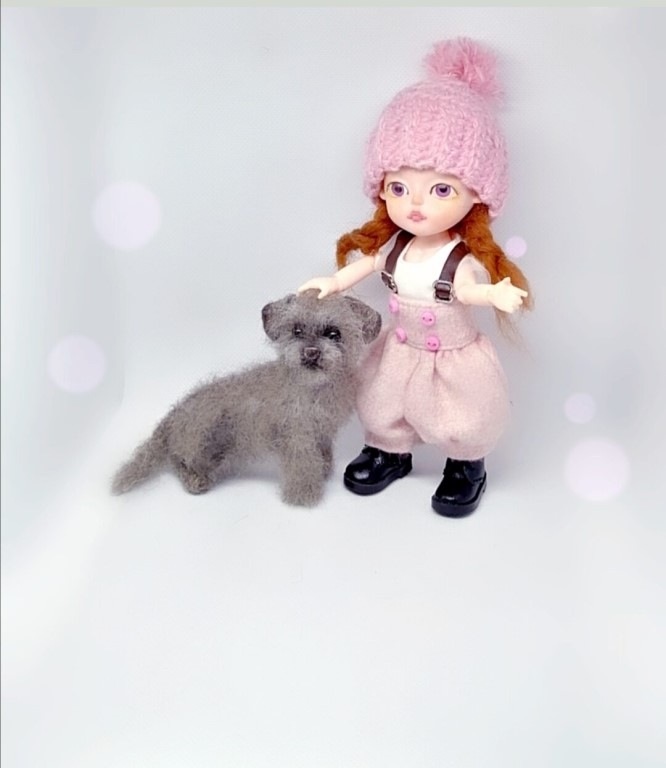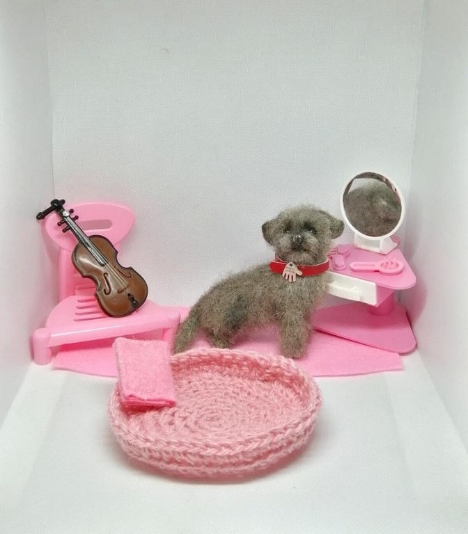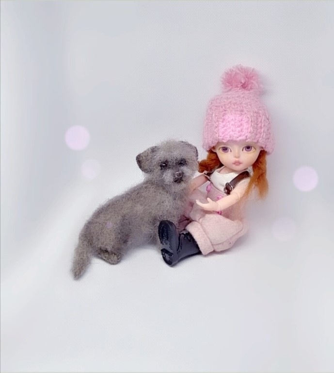 Собачка по кличке Жуля,тоже дворянка,рост около 8см.,сухое валяние из шерсти.