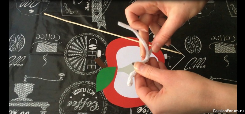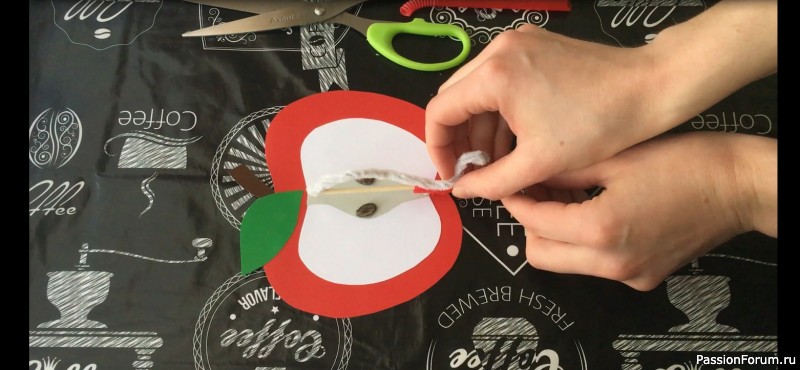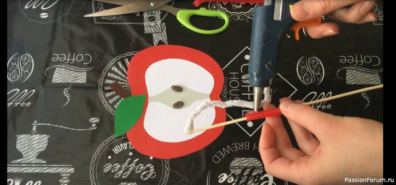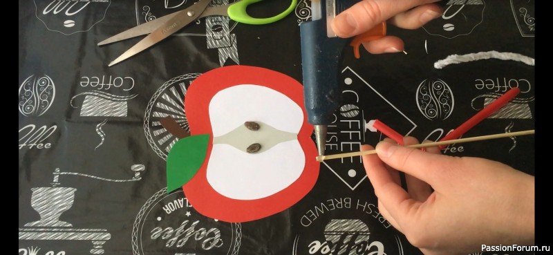 Приклеиваем кусочек красной трубочки на основание яблока.