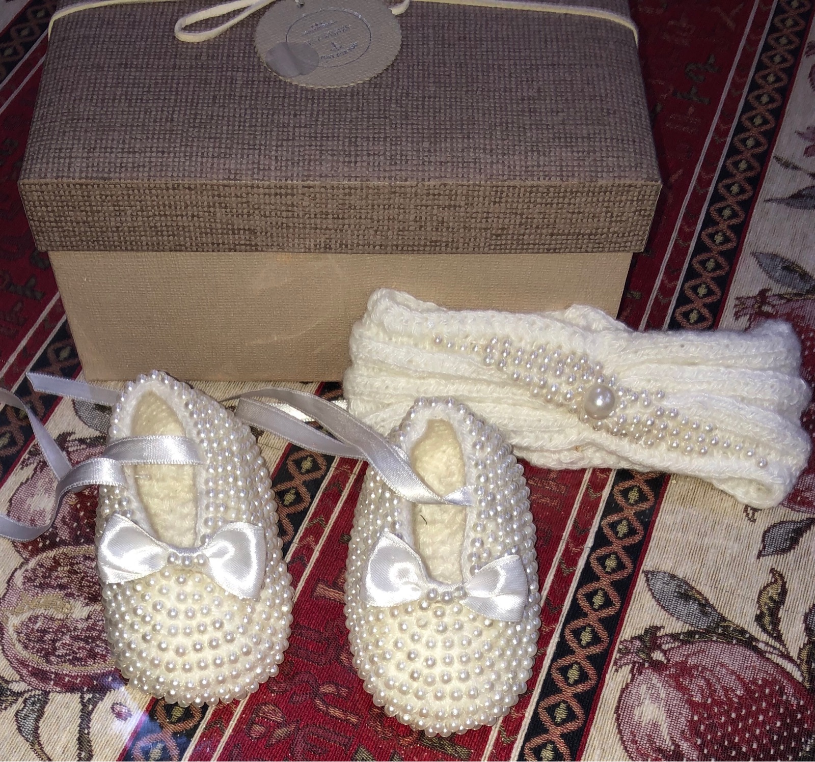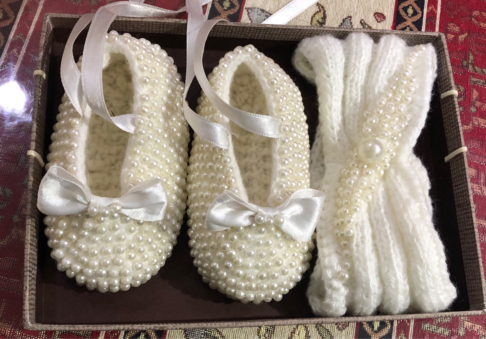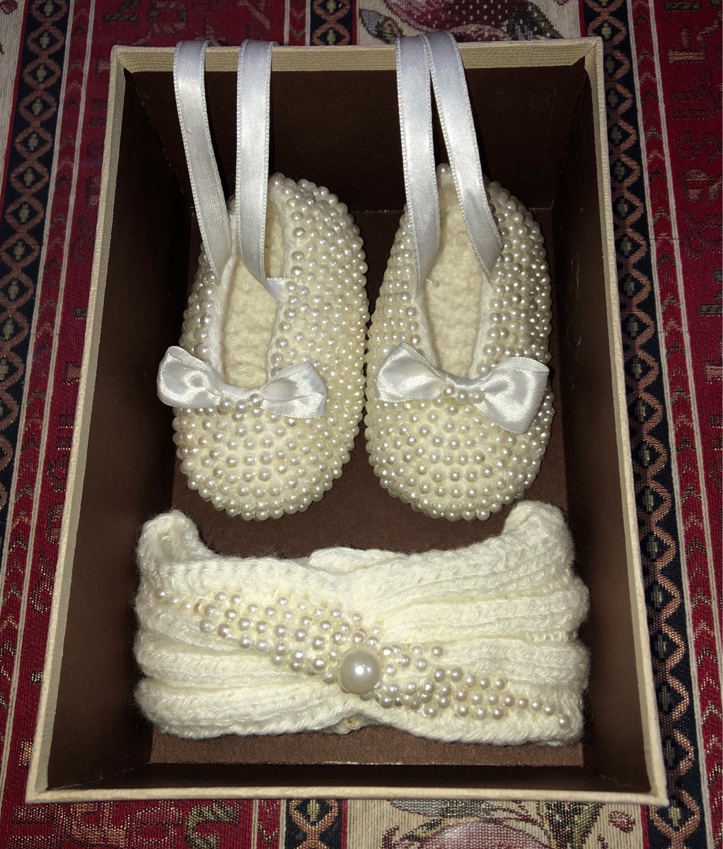 Обувь с бусинами. В комплект идёт повязка.