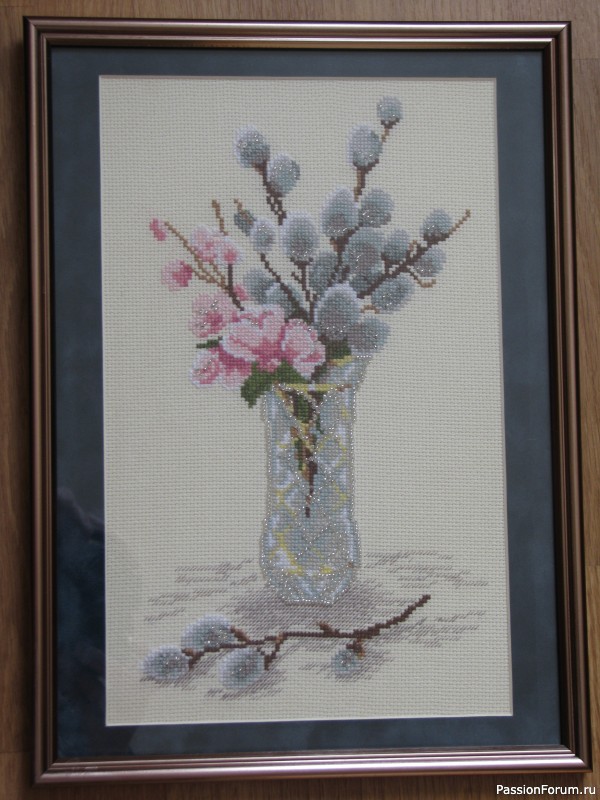 Да, Вера, оформляла все сама. Заказала в багетной мастерской паспарту и простую деревянную рамку. Покрыла ее шпатлевкой и «ложечкой» с дырочкой посредине, кот. часто дают в кафе для размешивания сахара, прочпокала. После сушки наносила акриловые краски, кот. подходили к вышивке. Залакировала. Спасибо, что заглянули.