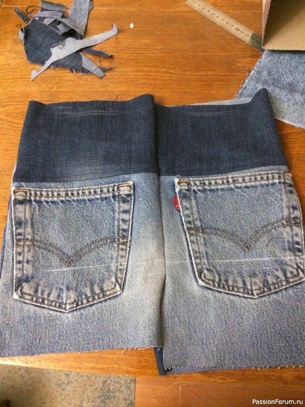 В ход пошли не только карманы. Сострачивала, подгоняла, подрезала, отрезала, сшивала и наконец еще и клеила к картону с помощью горячего клея.