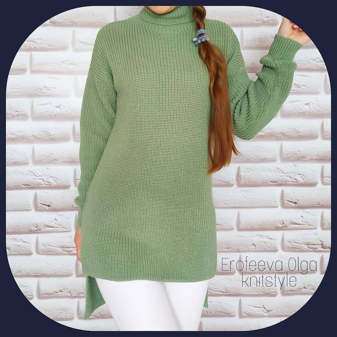 Один из моих последних МК это оригинальный свитер жемчужной резинкой с удлиненной спинкой, боковыми разрезами и высокой горловиной.