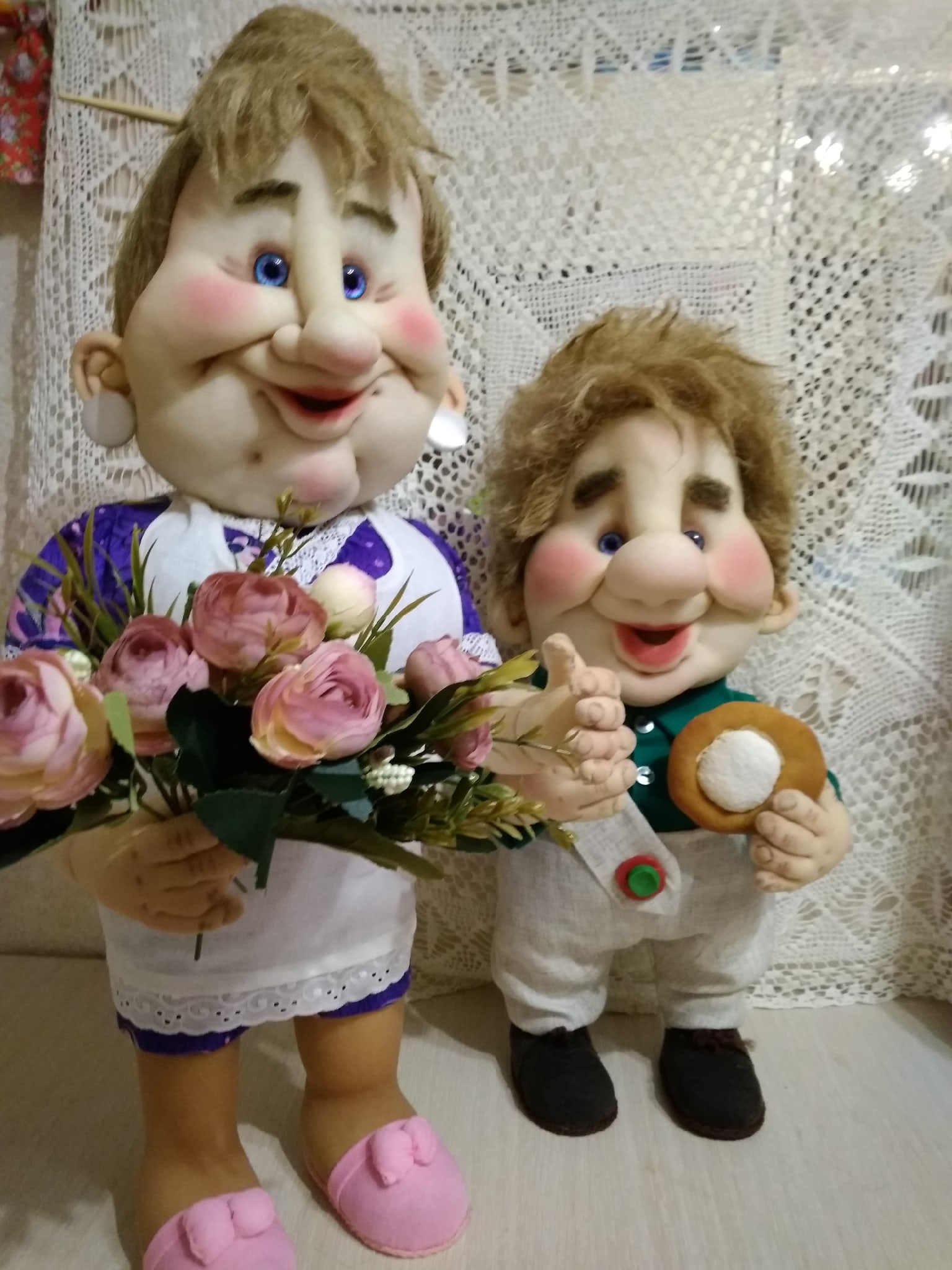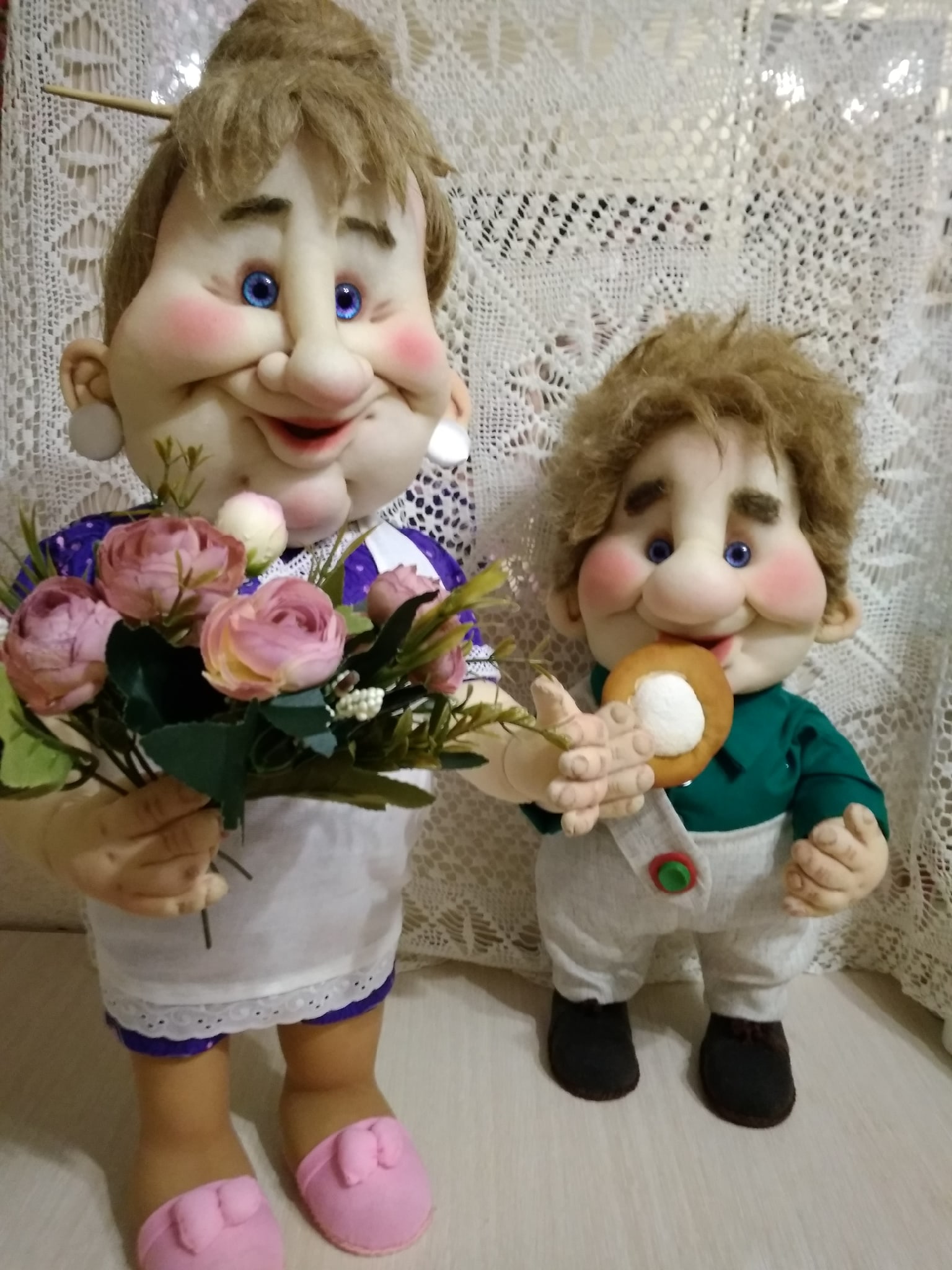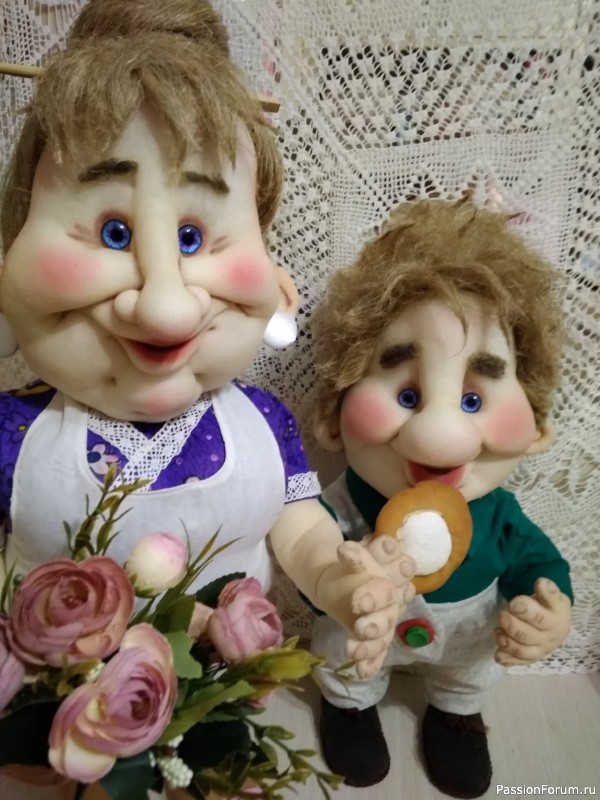 Татьяна, ваши персонажи просто збежали с экрана из мультика! Живые, нарядные, эмоциональные — парочка замечательная! Труда много вложено, мастерство на отлично!