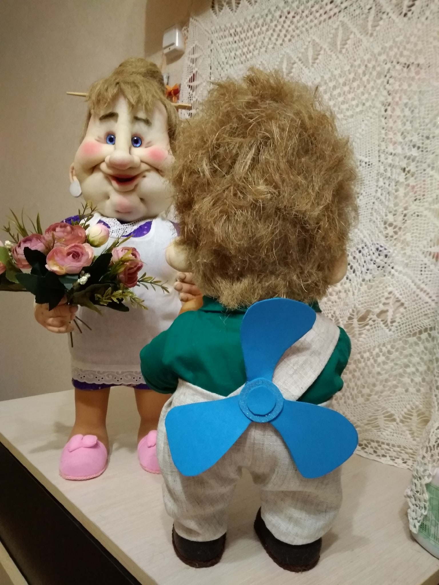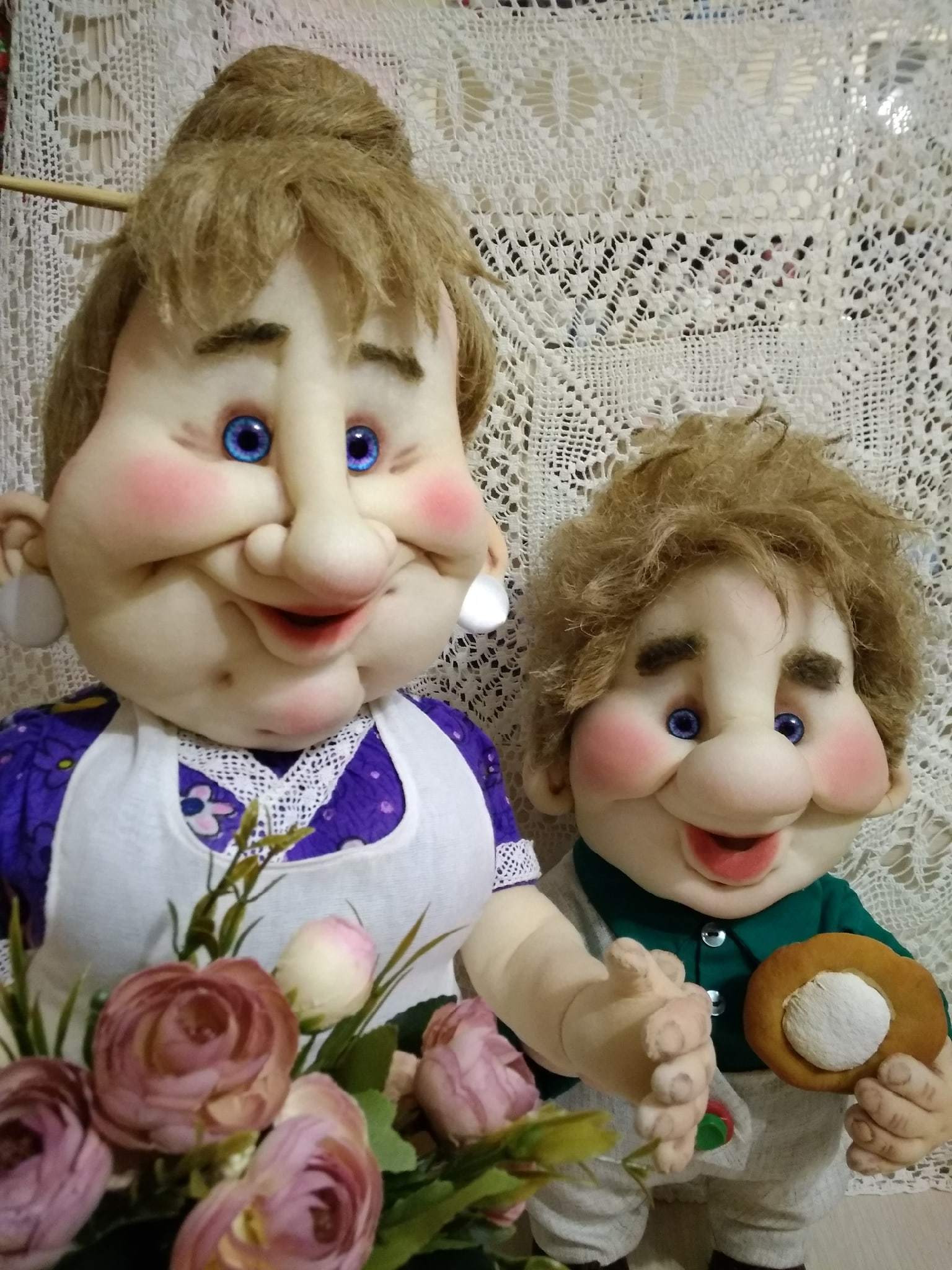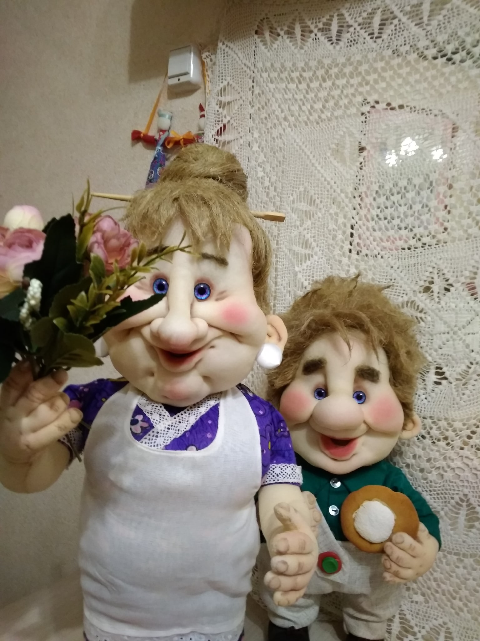 Татьяна, ваши персонажи просто збежали с экрана из мультика! Живые, нарядные, эмоциональные — парочка замечательная! Труда много вложено, мастерство на отлично!
