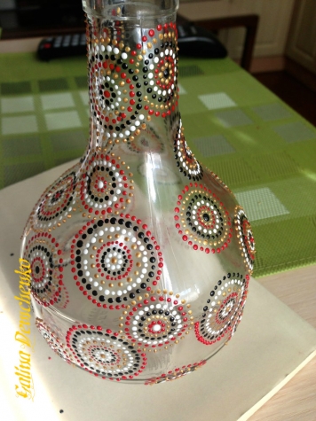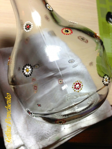 Обязательно попробуйте. После работы не забудьте закрепить роспись в духовке, тогда графинчики можно будет свободно использовать по назначению, а не только для красоты:))