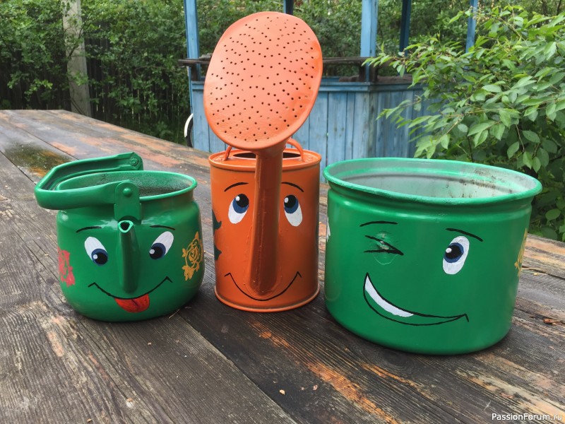Ну как же здорово получилось! Веселые, забавные, милые! И спасибо за идею: я купила не то дачу, не то просто участок, и там железного барахла — полнехонько! Вот с посадками разберусь — возьмусь за кисточку! Может, и у меня что получится!