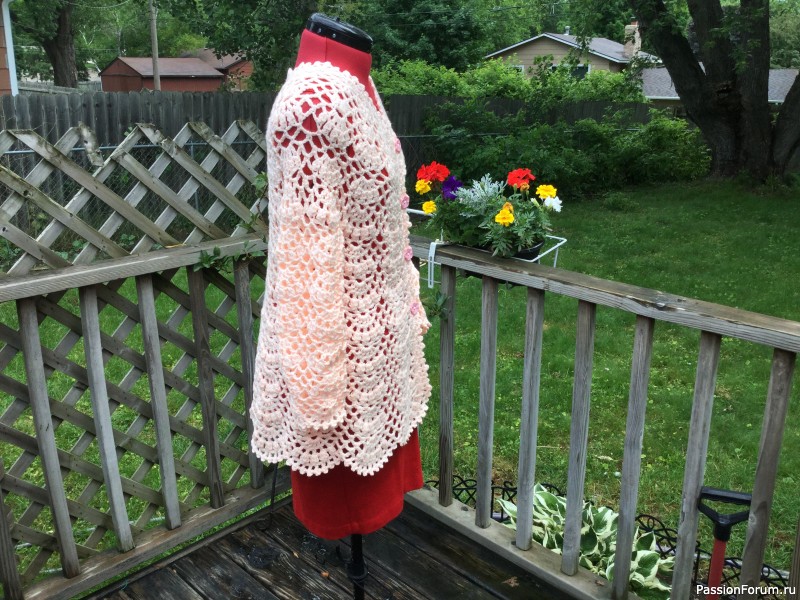 Кардиган для молоденькой девушки ,подружке моего младшего сына Саманте .Так бывает в жизни ,что через 20 лет на земле встречаются двое —рождённые в один год ,в один день ,в одном и том же госпитале с разницей в один час,вот такая теперь у меня перед глазами парочка «Twix” ,Они очень похожи по характеру ,знак зодиака Весы,оба любят животных ,спокойные и не очень стремятся в шумные компании .Ну поживем увидим.....