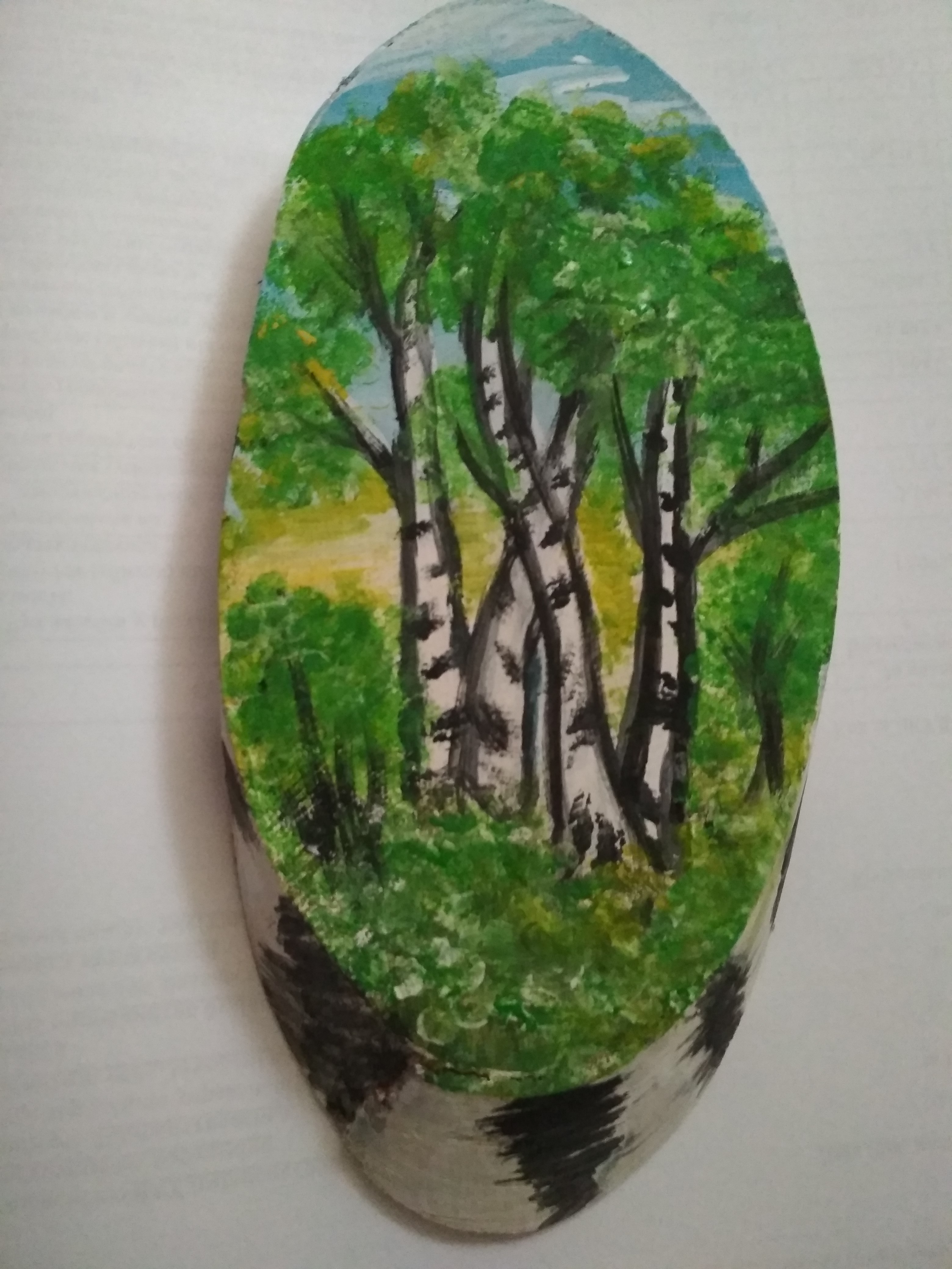 Всем привет!Очень люблю природу,всегда любуюсь работами,как красиво рисуют ! Вот решила первый раз нарисовать на спиле. Кисточкой рисовала еще в школе,вот захотелось чего-то новенького сотворить!Краски использовала акриловые.
