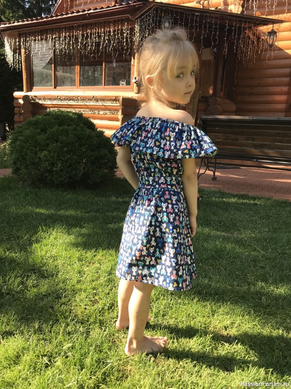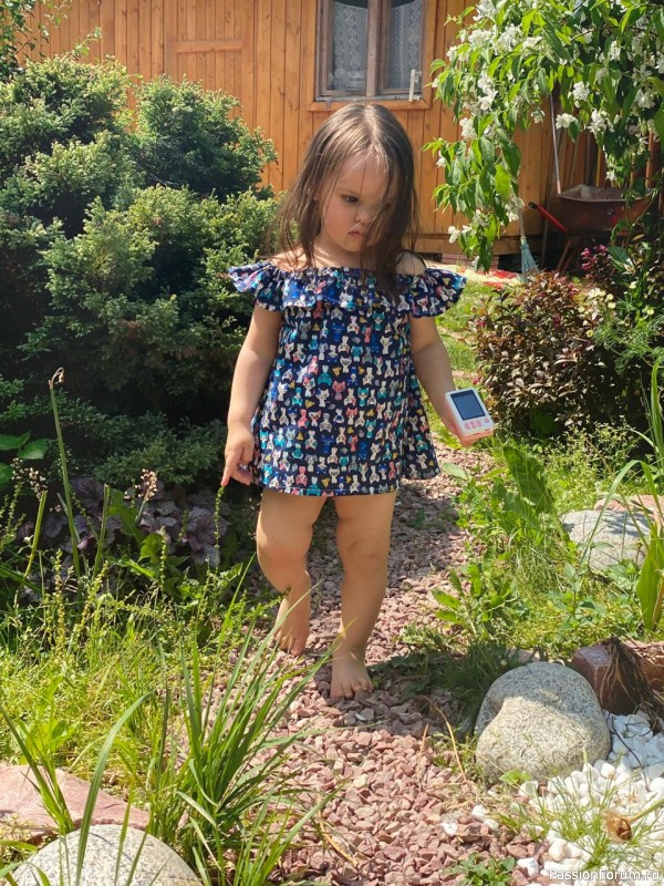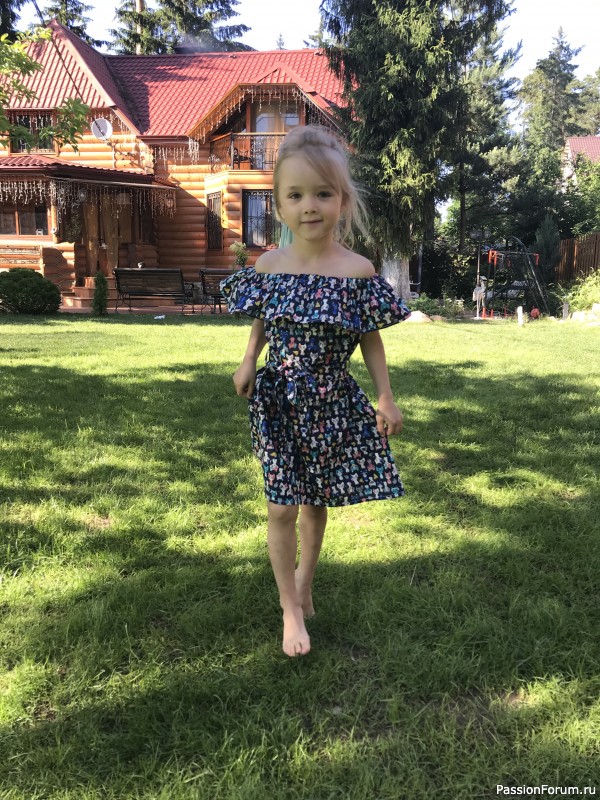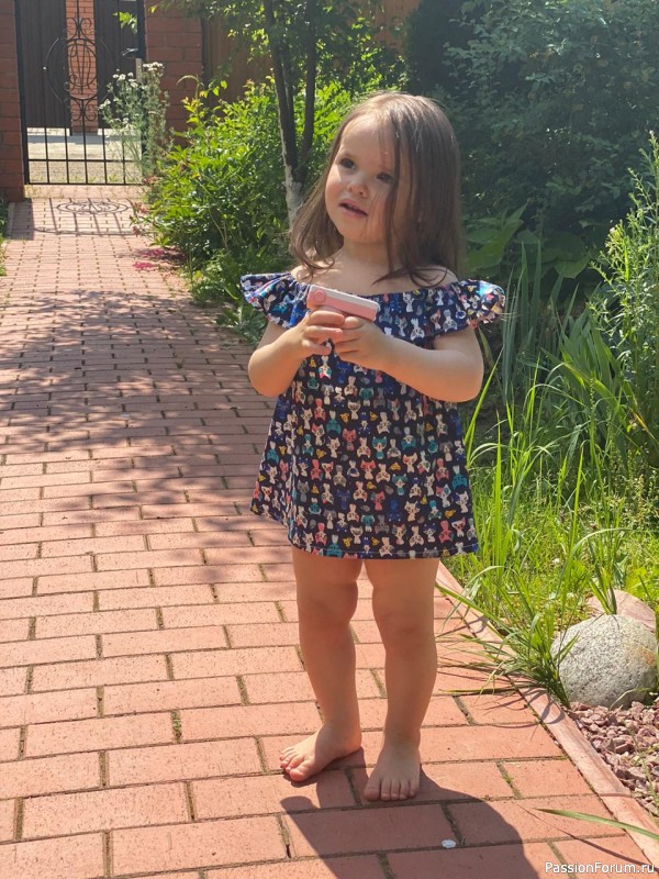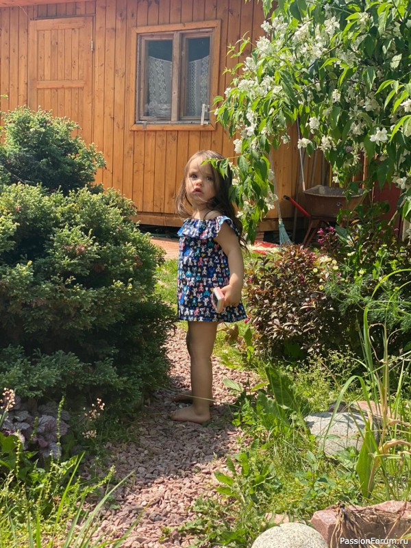 Решила шить платье с рюшем на плечах для Кристиночки. А из остатков получилась ещё туничка для моей любимой племянницы Софии.